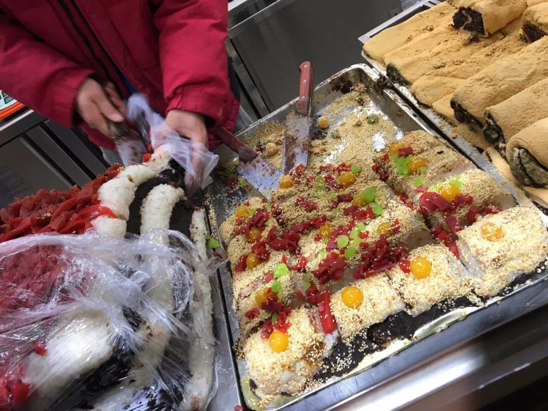 白记年糕,专卖各种年糕。他家的年糕有江米、紫米和江米面的3种。豆馅儿甜而不腻,仔细吃还能吃到带颗粒的红豆!口感软糯有嚼劲,一定要配着上面的清甜微酸的山楂糕一起吃,口味超和谐的!
