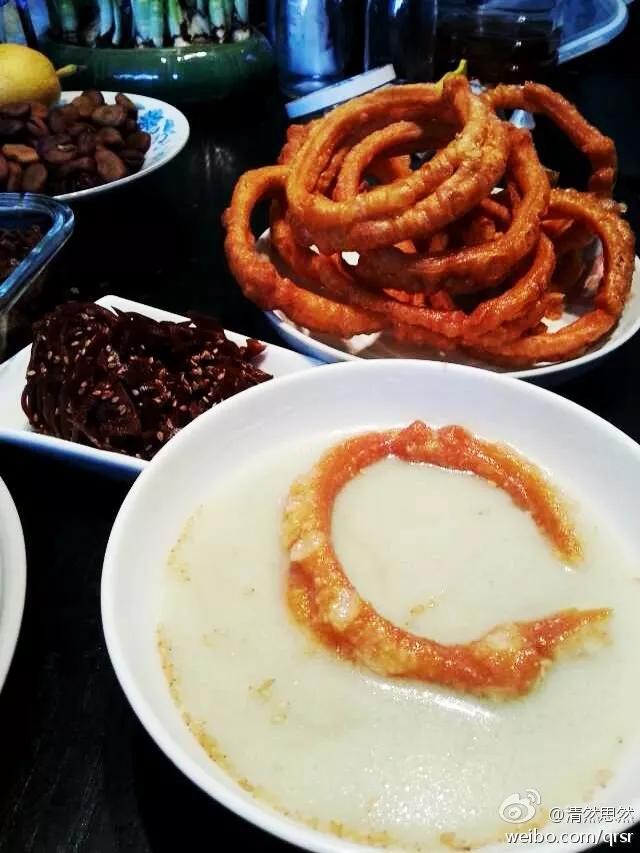 老北京豆汁儿,已有300年历史,具有养胃、解毒、清火的功效,标配焦圈,地道北京味儿,不过不是所有人都喝得惯哦!生豆汁可以买来直接喝,刚发酵好的豆汁会有点回甜,而且味儿也没有熬好的重,适合刚接触豆汁的朋友。