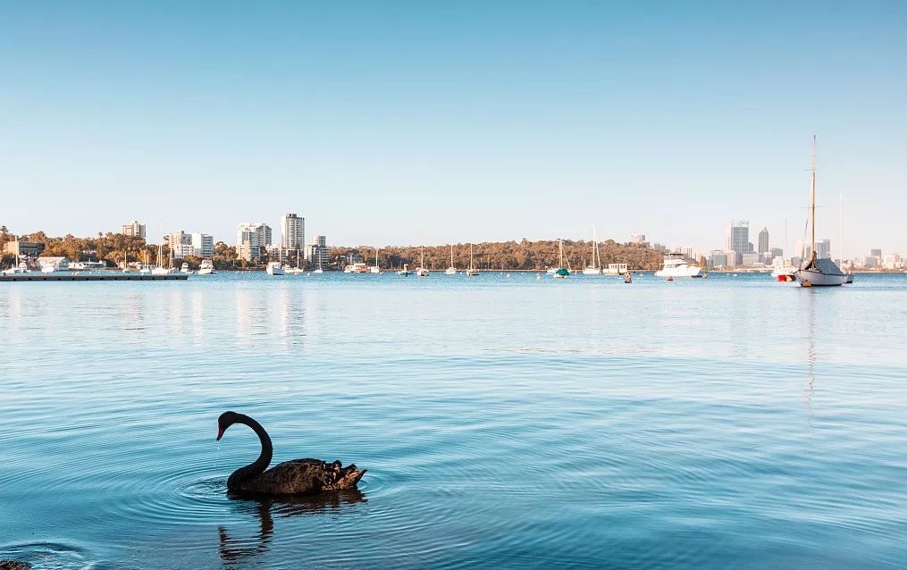 珀斯的天鹅十分与众不同。1697年,荷兰探险家乌拉敏到印度洋东岸时,发现了一个河口,沿河而上后,他看到了其他地方没有的黑天鹅,于是将这条河定名为天鹅河。