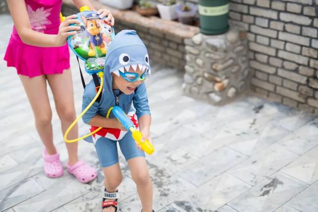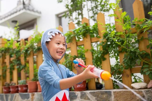 炎热的夏天玩什么最开心呢?当然是水啦!我在出发之前就想好,要让孩子们在院子里玩儿水枪大战!姐弟俩玩上之后就停不下来的节奏!要不是我用泡泡枪诱惑他们,真的担心继续玩下来会感冒呢,哈哈~