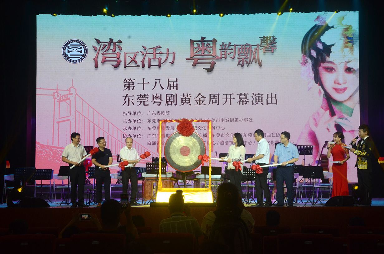 (第十八届东莞"粤剧黄金周"以敲锣形式拉开序幕)