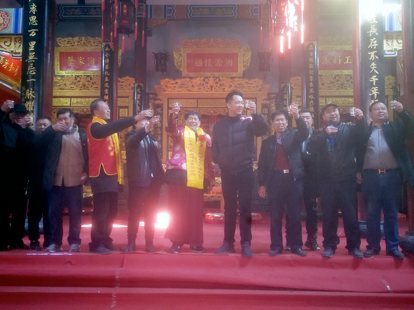 31日;由中央电视台财经频道主持人龚铃铃现场主持了牛田家庙晋祖现场会!会上龙泉会长对家庙修复重建进行了总结!各省代表及嘉宾对家庙修复重建及晋祖仪式的举行纷纷表示祝贺;联合国国际生态安全科学院院士龚巧玉以及来自台湾、香港、珠海等地龚氏贤达名人!纷纷发来贺电对龚氏家庙晋祖典礼表示热烈的祝贺!