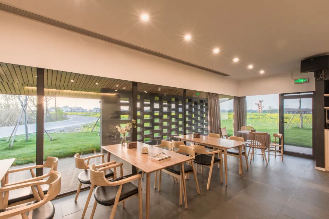毗邻广袤田园最近的房子,是稻田理想西侧宽敞明亮的稻田咖啡厅。门前一条小路伸向稻田深处,旁边是绿地草坪。格子镂空墙,阳光穿过墙体,透过玻璃窗照在咖啡桌上,氤氲的咖啡香味,伴着屋檐上叮叮当当的悦耳风铃声,为你营造恬淡的午后时光。