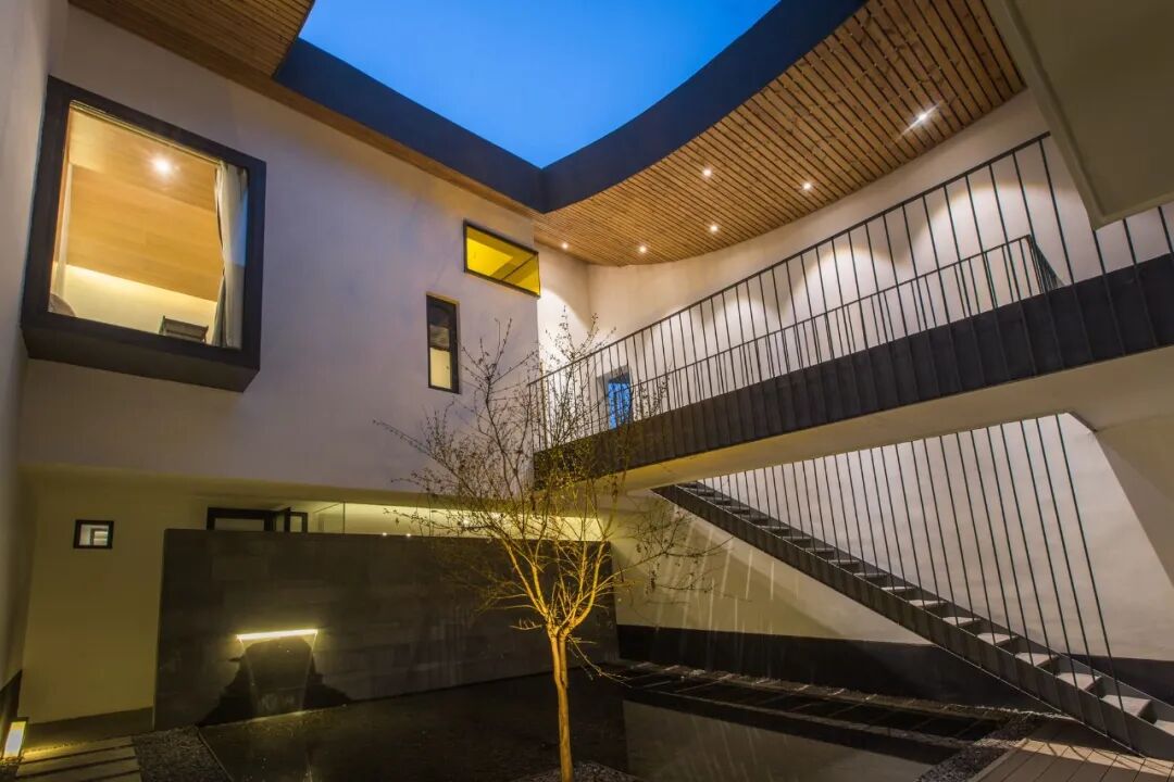院内还种有一棵绿树向上而生,一年四季与院子同呼吸共“生长”。拾级而上,置身楼梯、走廊或卧室观景窗,每一个角度都能看到不一样的景致。