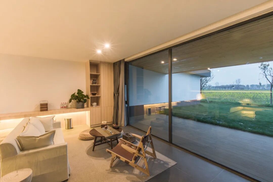 一楼卧室北侧是自带私家草坪的景观后院,室内整墙的全景落地窗,框着后院的千亩良田,让你清晨起床就能欣赏到一望无际的稻田风光。