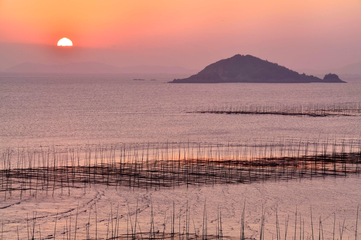 雨过天晴,浙江省台州湾沿海被冬日余晖涂满炫彩,一幅印象派泼墨油画跃然眼前,美不胜收。