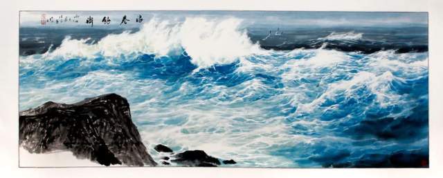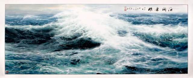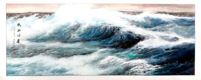其作品个性鲜明,独标一格,在创作实践与丰富新理论方面兼容并蓄、大胆创新,精心创作出多幅极具学术研究价值的典藏力作。数十年对海洋绘画的系统研究与创作实践中培养了一大批海洋画家,并以“借古开今”之理念,“隔代传承,横向移植”,创造性地探索出以 “喻水法”、“围墨法”、“破水法”辅以西洋画之光感、质感相融合的“王家样”画法而独步国际画坛,填补了中国美术史上以纯水墨来表现海洋画的空白。