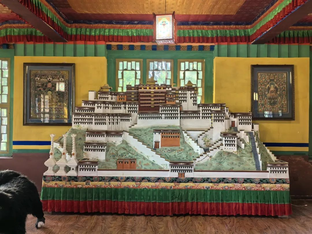 一层大厅,耸立着始建于7世纪的布达拉宫的模型。布达拉宫是世界上海拔最高,集宫殿、城堡和寺院于一体的宏伟建筑,是藏建筑中的杰出代表、中华民族古建筑的精华之作。