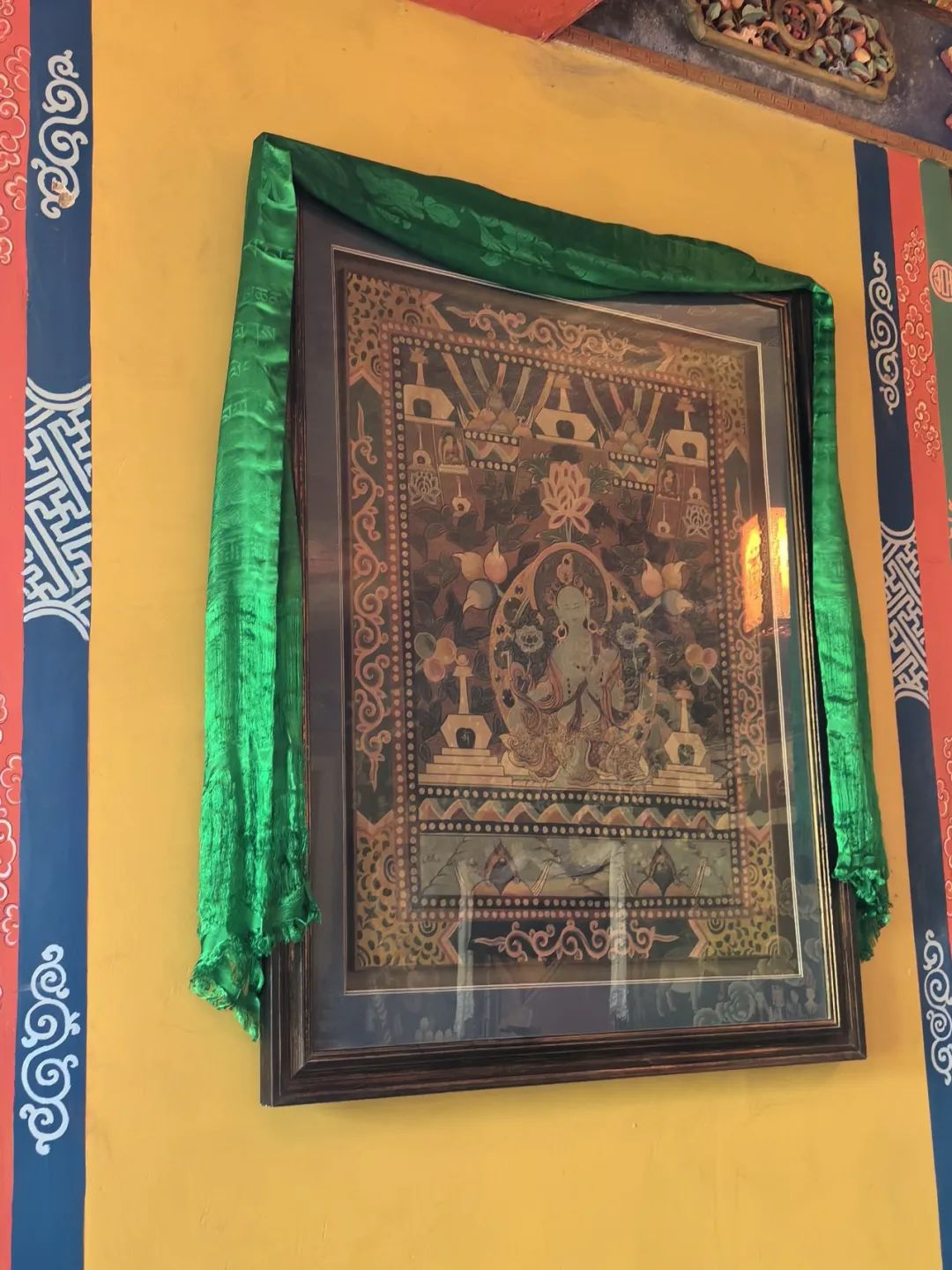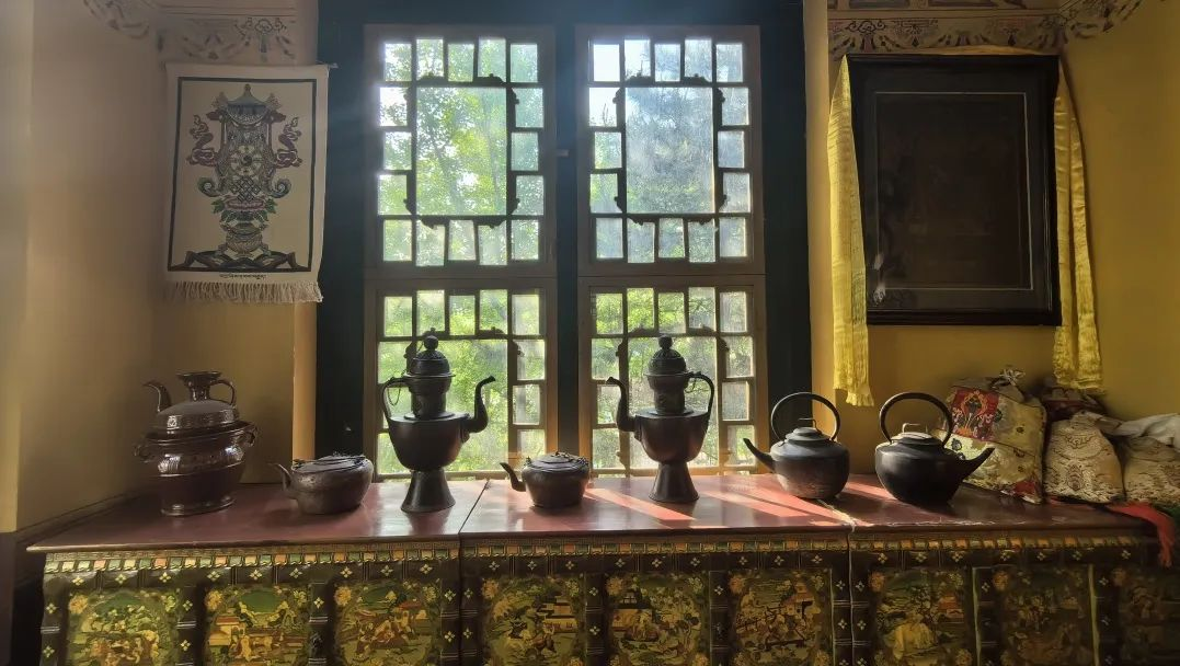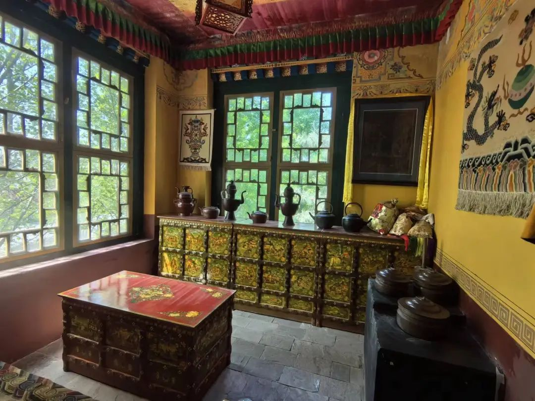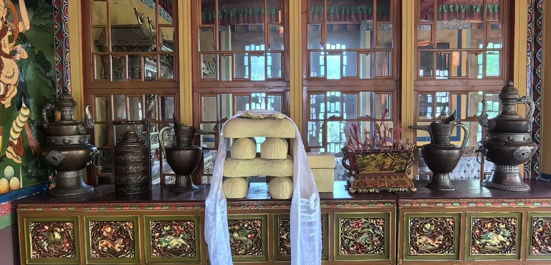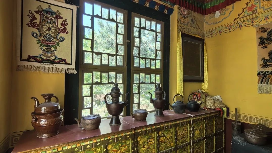佛堂内设有佛龛,供奉着藏传佛教的佛像。
