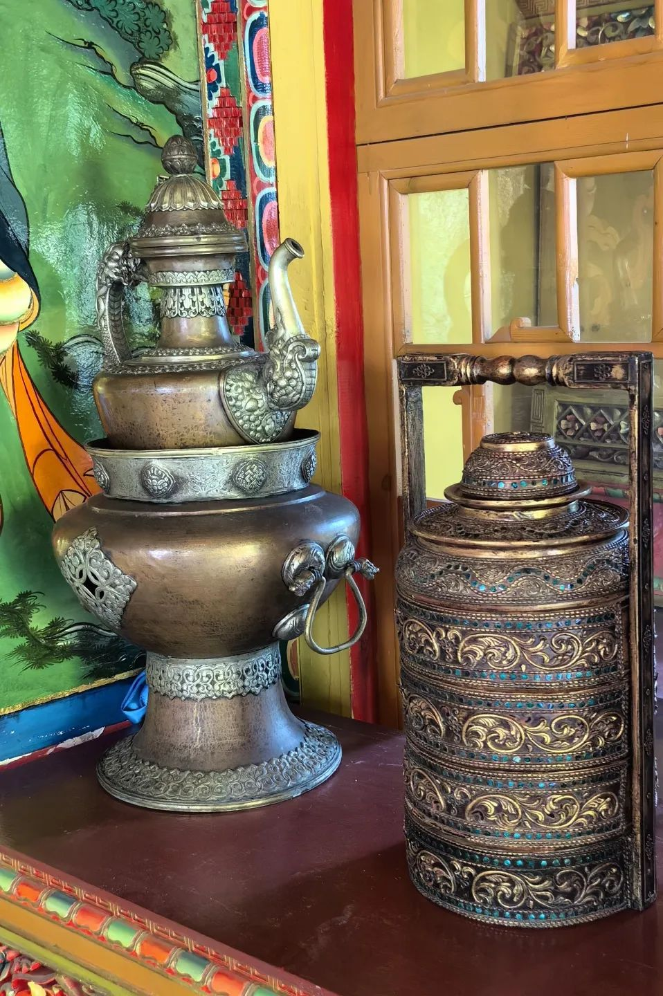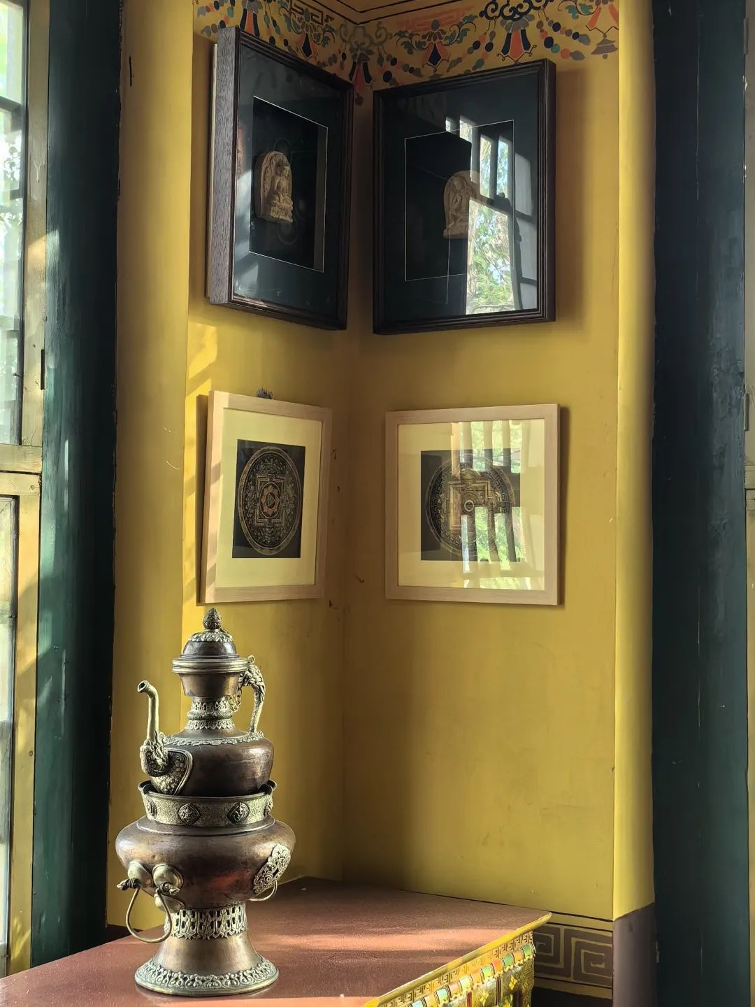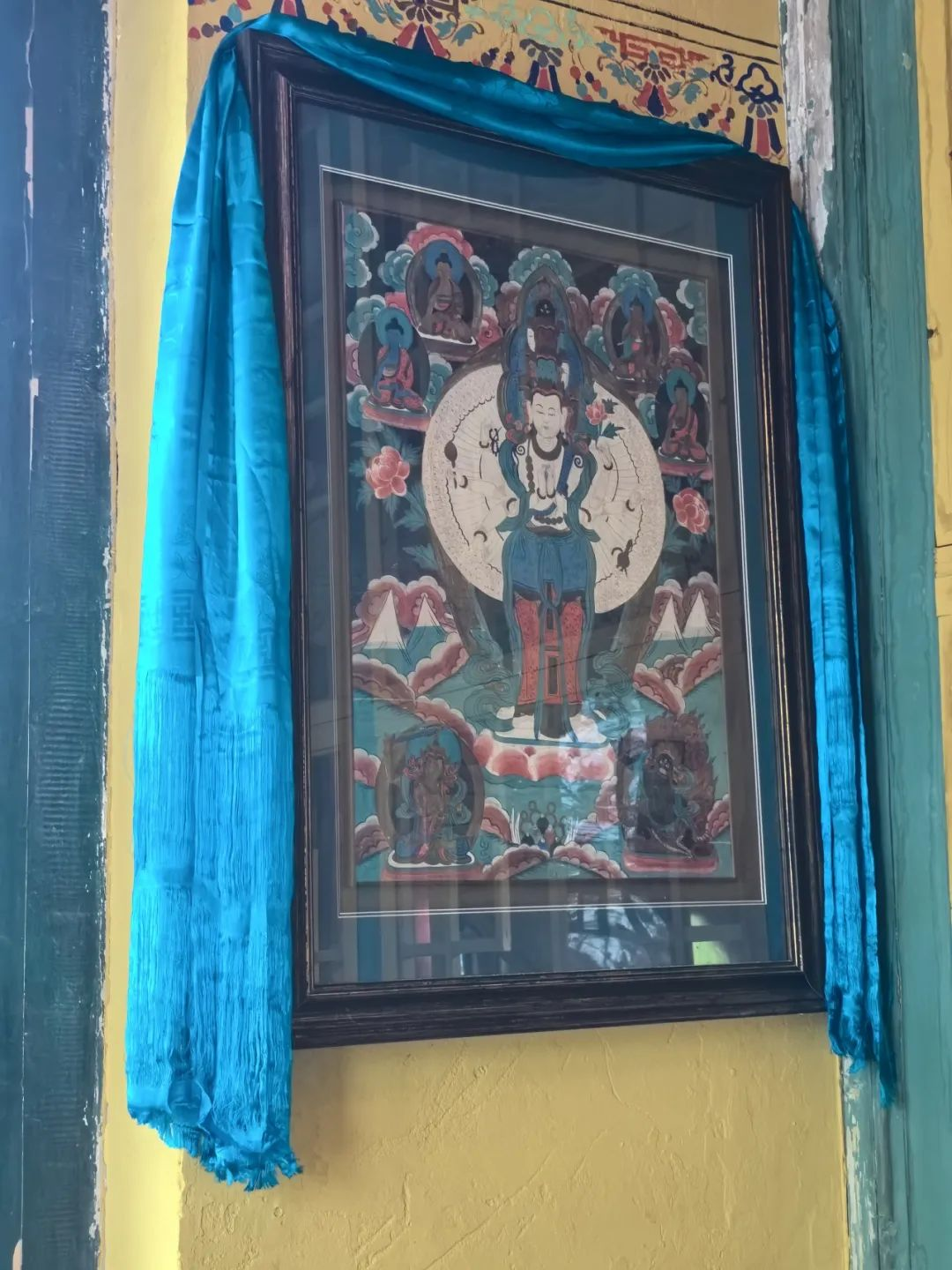 佛堂内设有佛龛,供奉着藏传佛教的佛像。