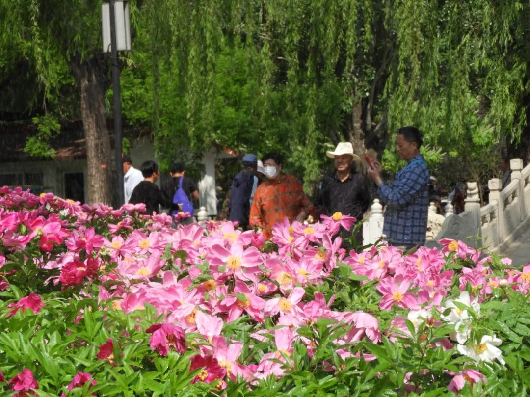 走进丰台花园,仿佛置身于芍药花海之中!一朵朵芍药花,红、粉、白……色彩斑斓,争奇斗艳,吸引了众多游客驻足,拍照、写生……大家用自己的方式记录下这赏心悦目的景致!