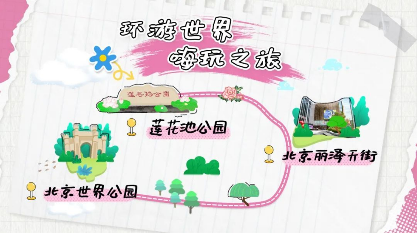 足不出京,就能环游世界。先到北京世界公园,感受异国风情;再到北京丽泽天街逛逛,一起“嗨”购一番;还要去莲花池公园沿湖漫步,咱们也来个“荷”你相约的合影吧!这趟旅行,朋友圈就靠你来撩了!