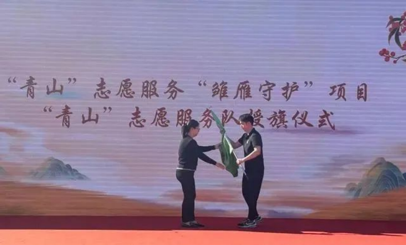 活动当天,一面印有北宫镇“青山”志愿服务队的旗帜正式交到了年轻“雏雁”们的手上。