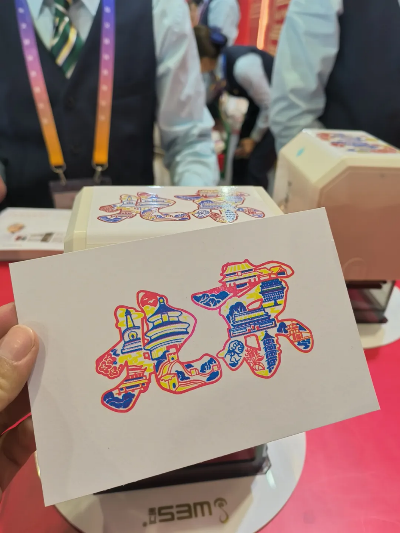 北京邮政携7家主题邮局参展,可以一次性集齐7家的主题印章,还有2款展会限定款套色章,观众纷纷打卡拍照。
