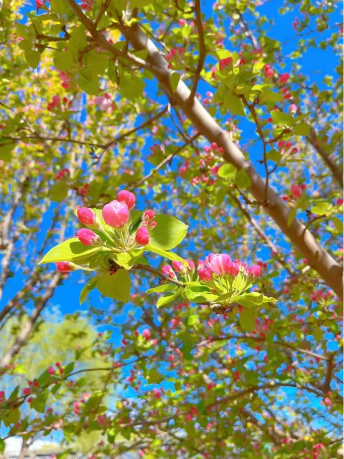 甜美腮红半永久的西府海棠,凭实力霸屏各位小主的朋友圈,风吹过时,花瓣雨的氛围感,超绝。