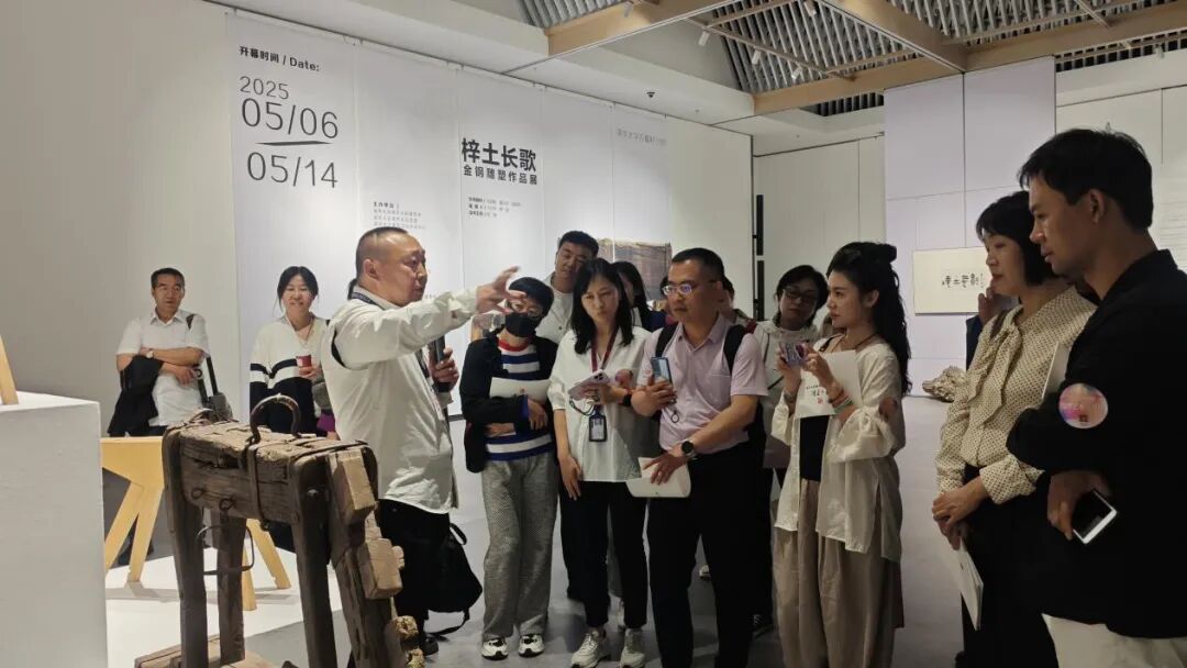 在讨论环节,与会者积极发言,围绕金钢雕塑创作的灵感来源、地域传统文化的转译、雕塑的本土化与国际化等话题展开热烈讨论,不仅为金钢的雕塑作品提供了专业的研讨平台,促进了不同观点和理念的交融,为雕塑艺术的未来发展提供了有益借鉴和方向指引。清华大学美术学院培训中心借助本次展览的机会,开展清华艺术公开课,进行现场导览。