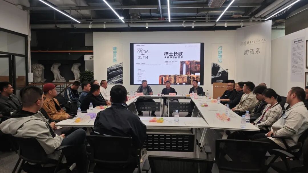 开幕式结束后,众人移步美术学院雕塑系C103,参加由清华大学美术学院雕塑系主任陈辉主持的“梓土长歌——金钢雕塑作品展”学术论坛,本次论坛汇聚了30余名雕塑领域的专家学者、博士生和青年学者,共同围绕金钢的雕塑作品展开深入探讨,为雕塑艺术的发展注入新的活力与思考。