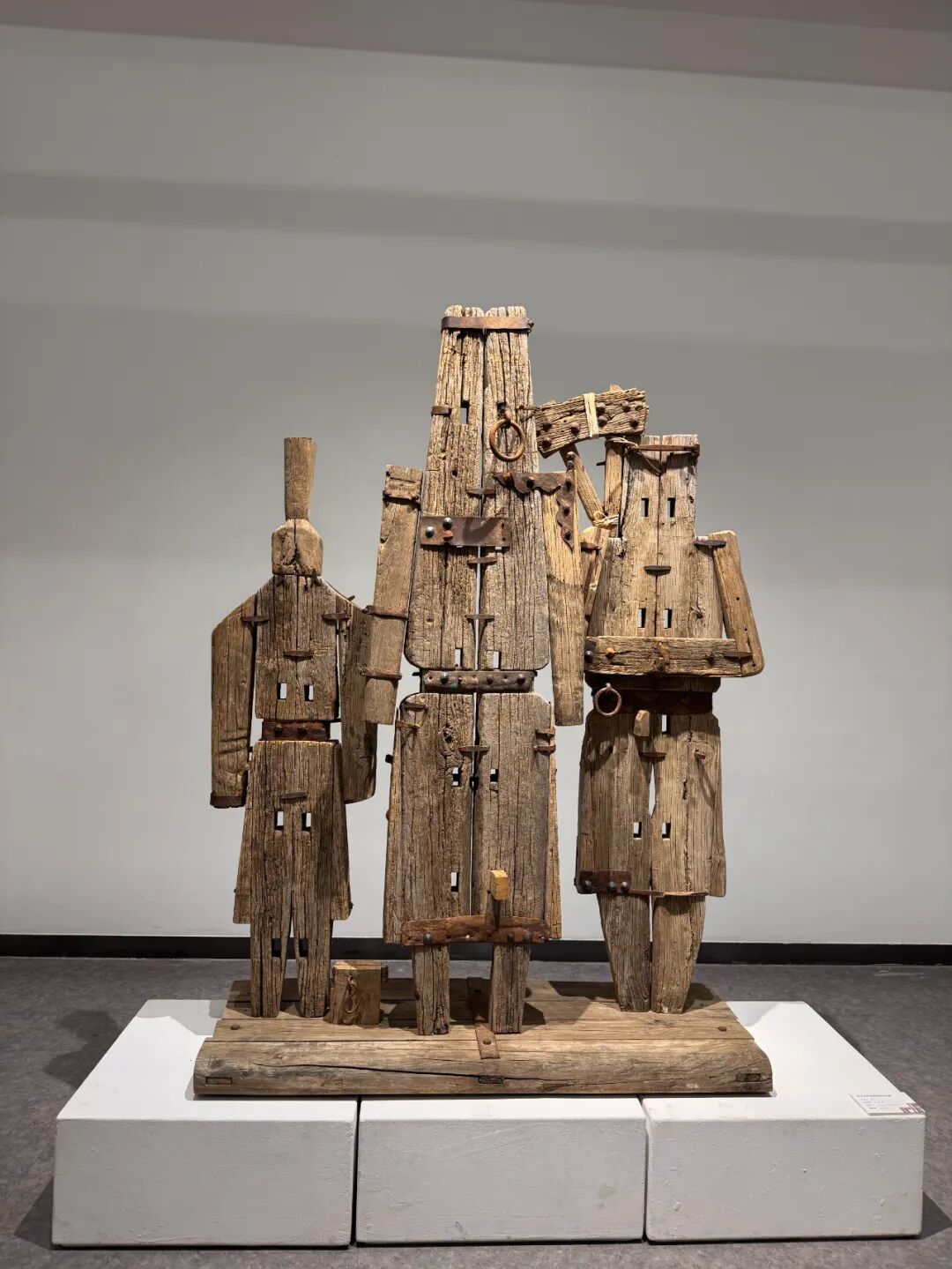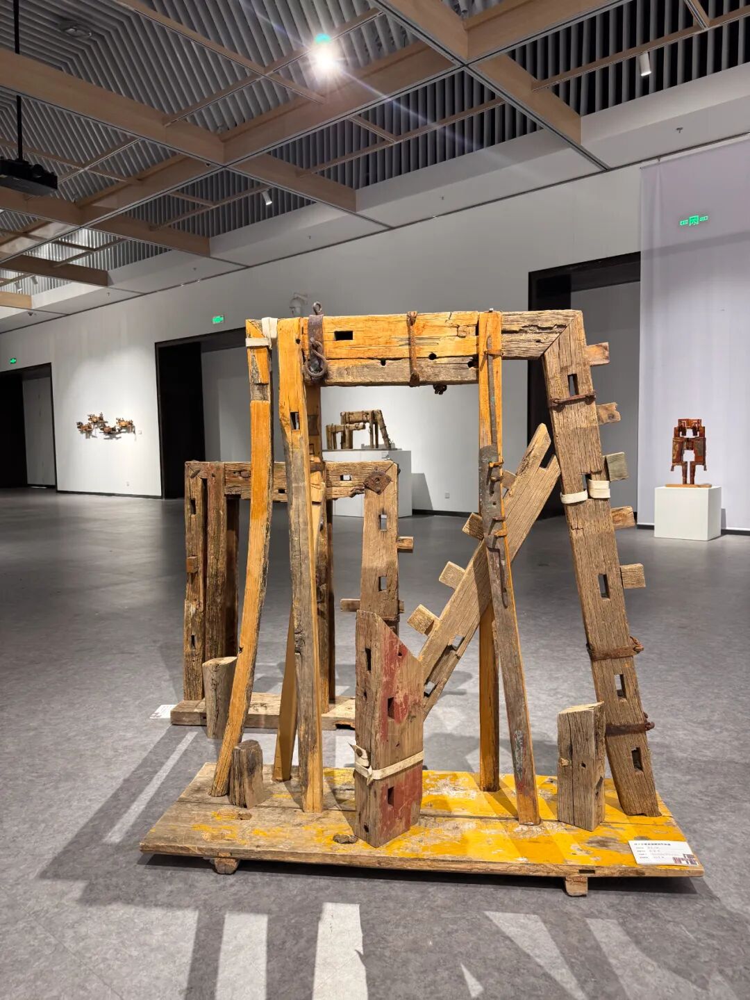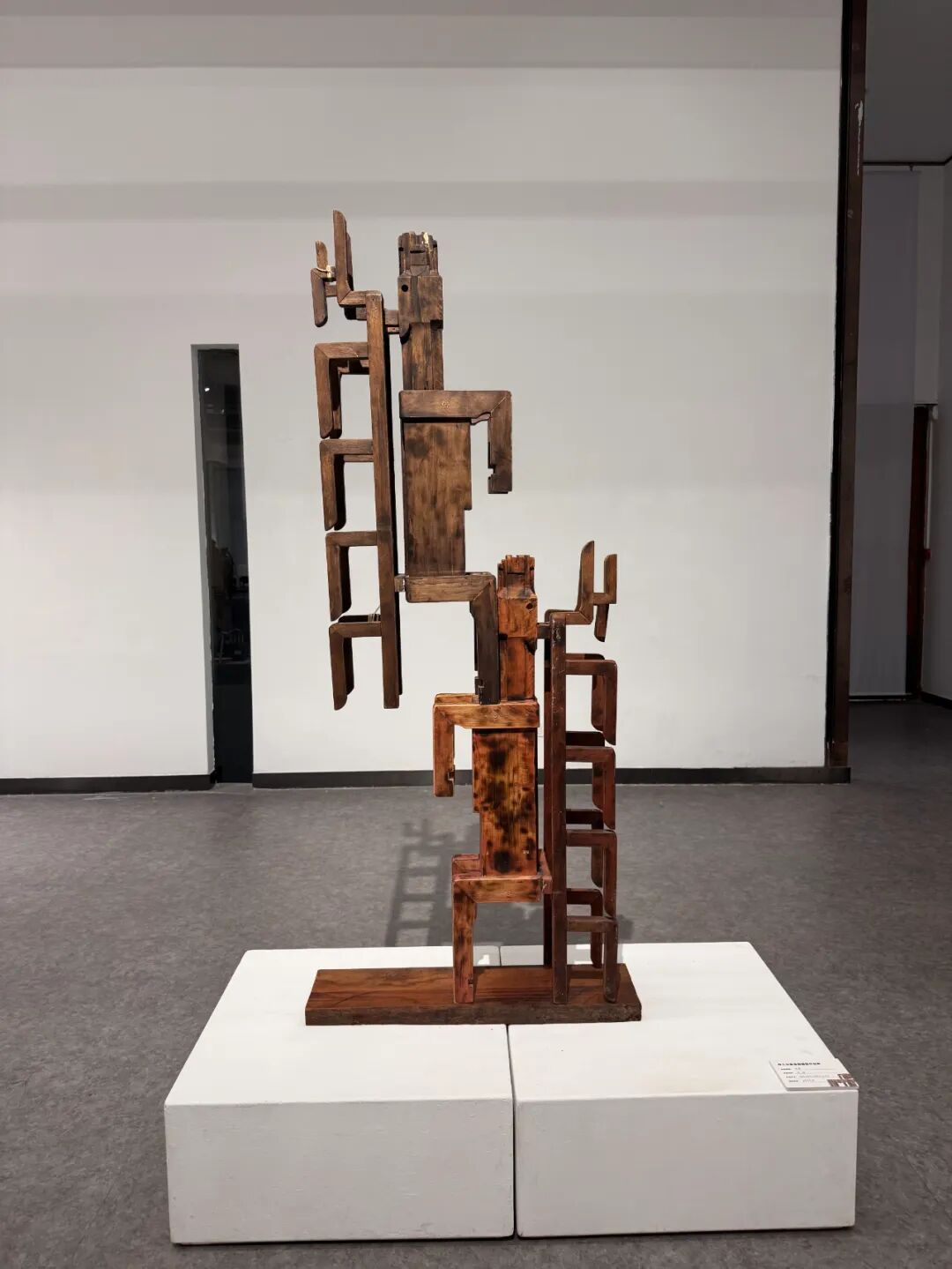 《生生不息》 木、皮、铁 150x50x165cm 2025(前)《静静地河1》 木、铁 100x40x130cm 2018(后)