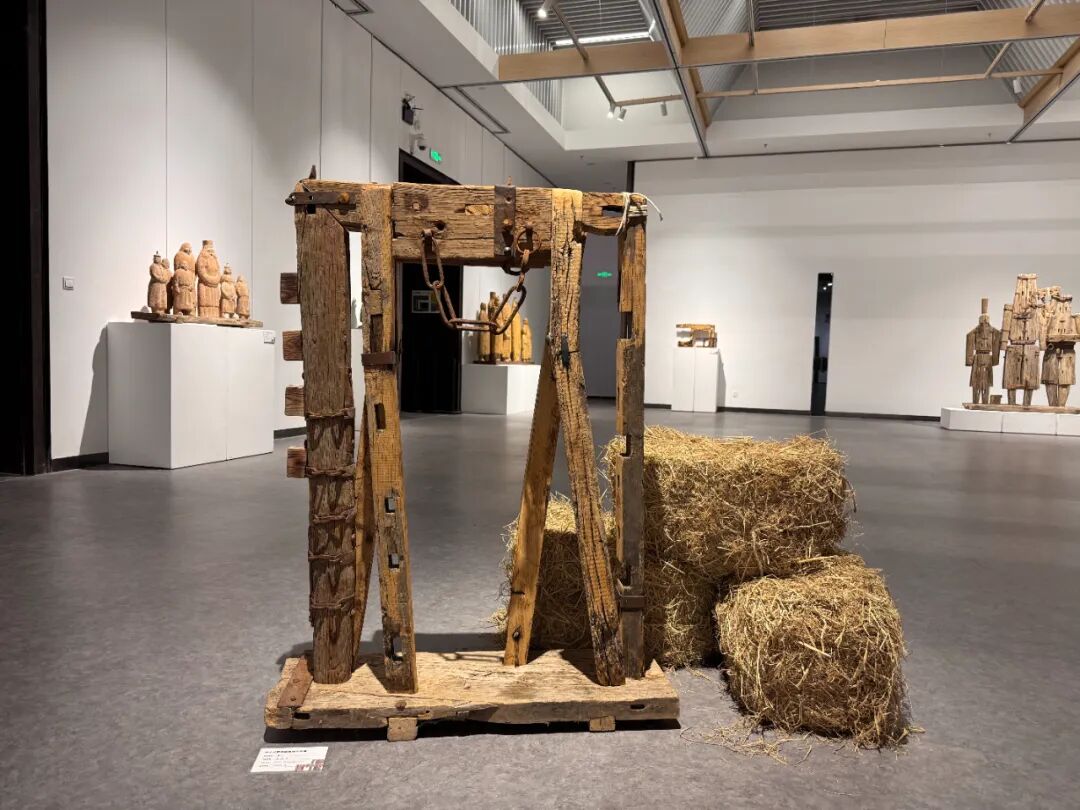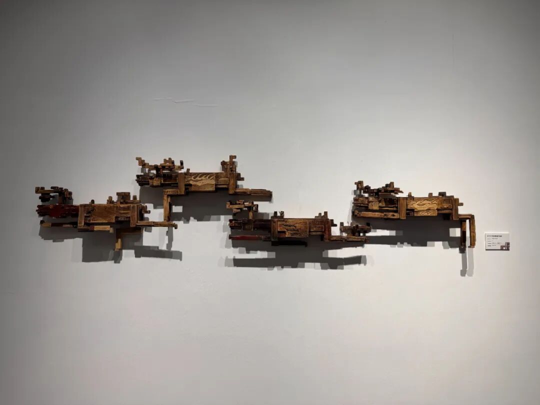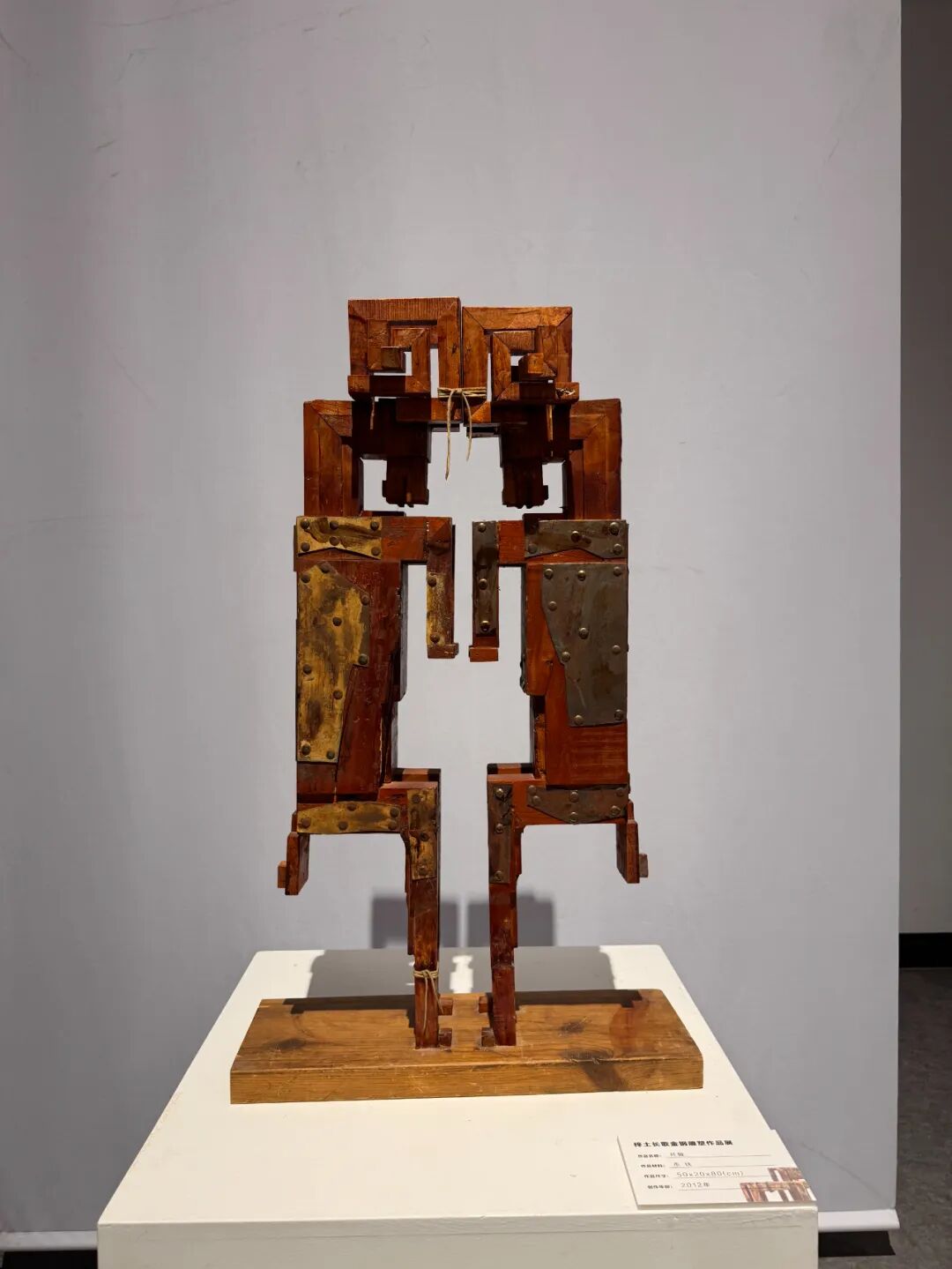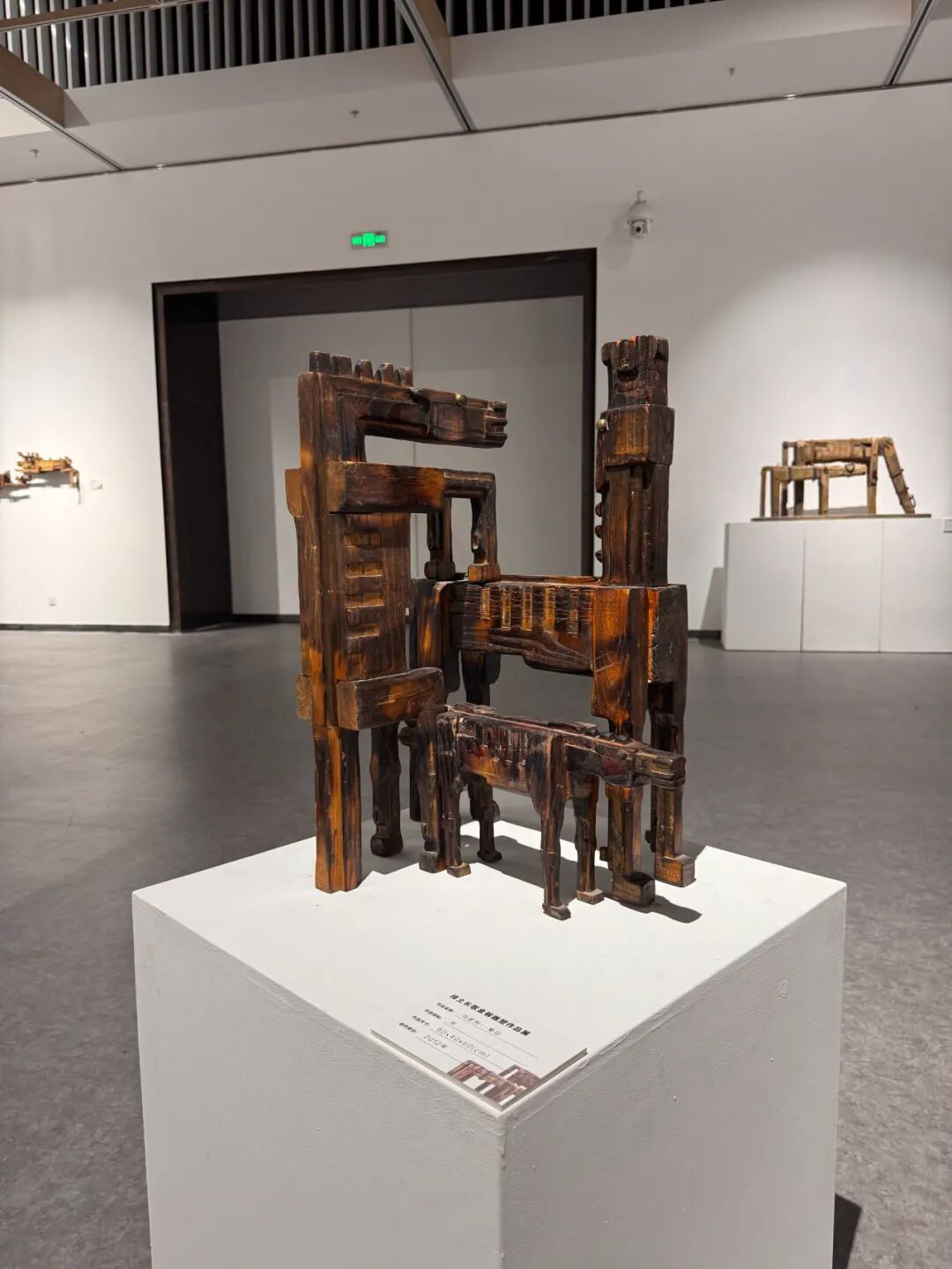 《生生不息》 木、皮、铁 150x50x165cm 2025(前)《静静地河1》 木、铁 100x40x130cm 2018(后)
