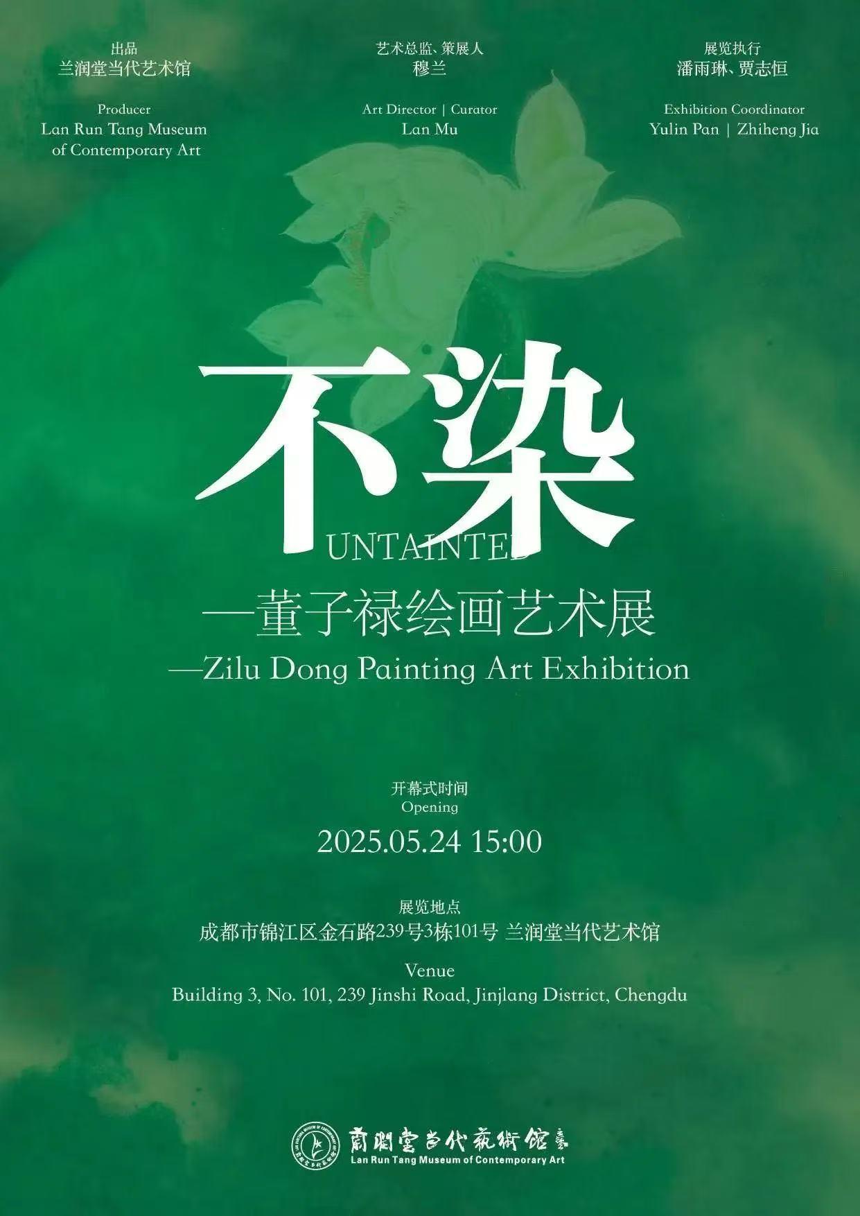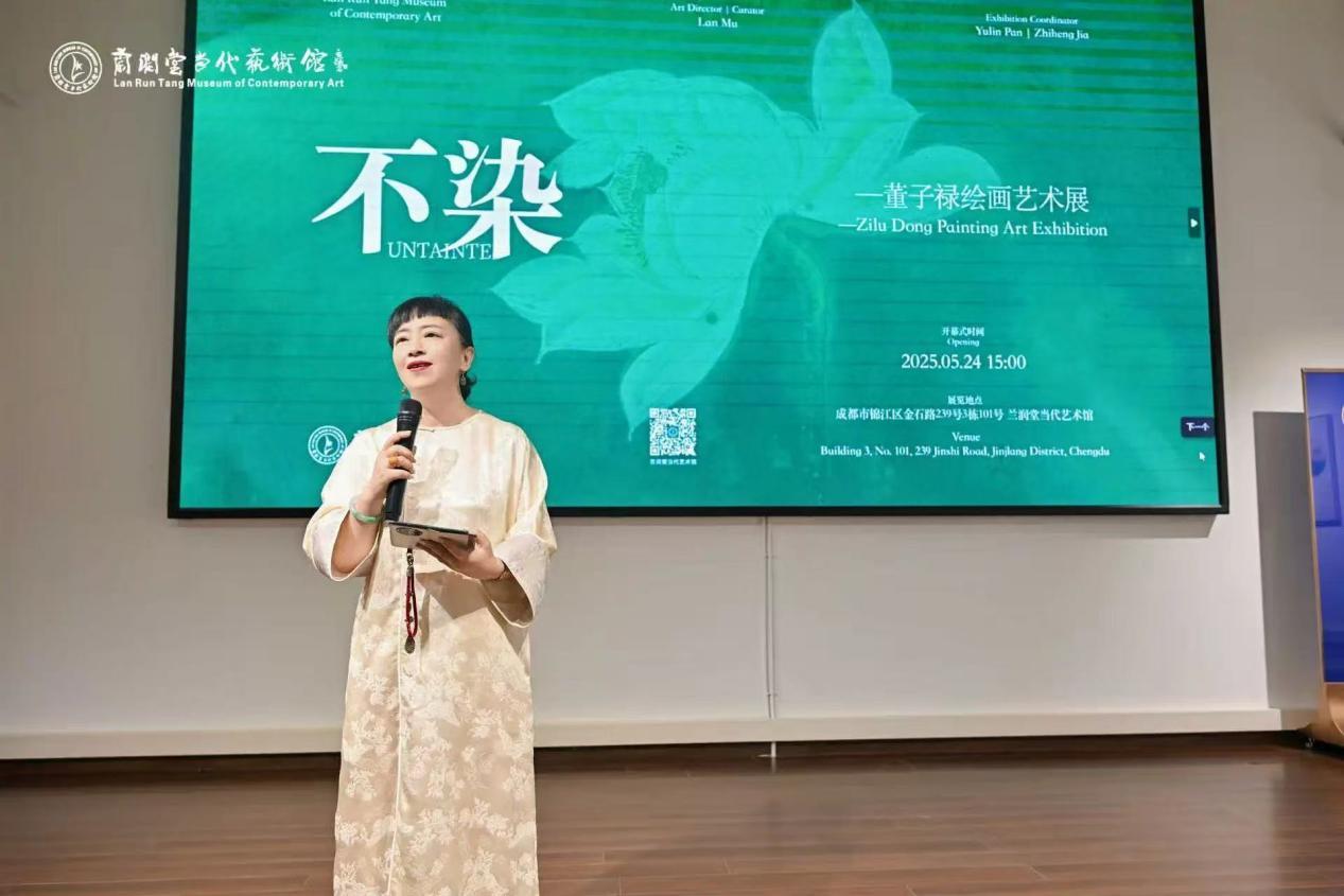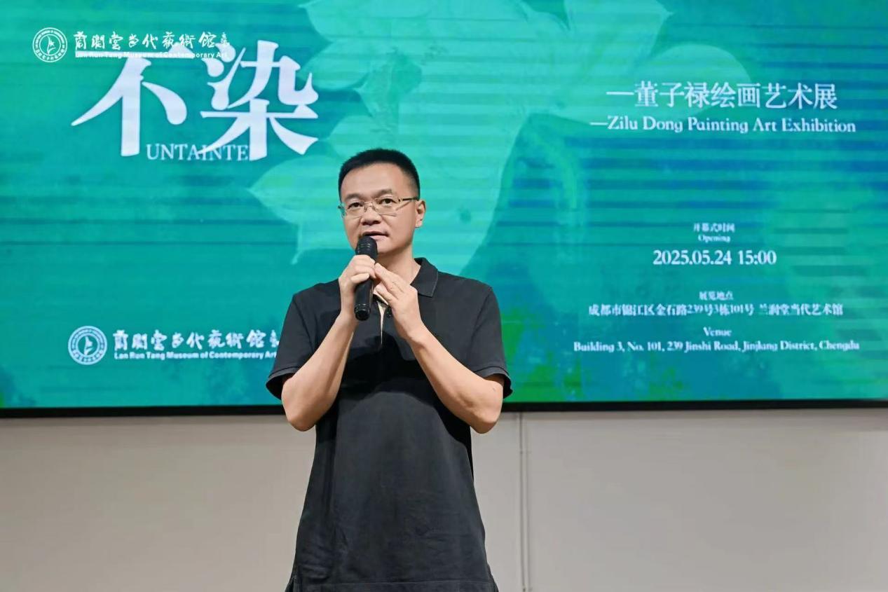 2025年5月24日,兰润堂当代艺术馆举行了《不染——董子禄绘画艺术展》的开幕式。本次展览呈现了董子禄近年来30件作品,董子禄以莲为题,不取艳态,不留繁复,于沉静中生光,于留白间得意。一笔一色之间,是对光与尘的回应,是对时与心的感悟。