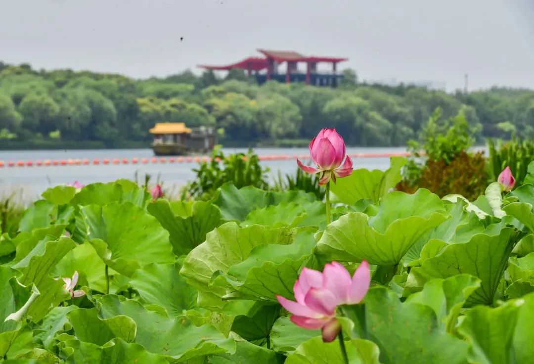 蝉鸣惊半夏,晴光映荷花,大运河森林公园的荷花已开满一池风雅。
