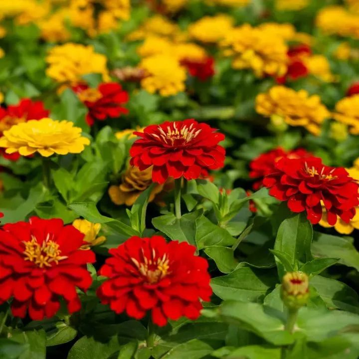 在花溪谷,绚烂如期撞入眼帘,百日菊正从层层绿意间铺开多巴胺调色盘,橙红、明黄、玫粉……饱满的花球在绿叶间灼灼发亮,连空气都透着甜滋滋的绚烂气息,仿佛把夏日的阳光都揉碎在了花瓣里。
