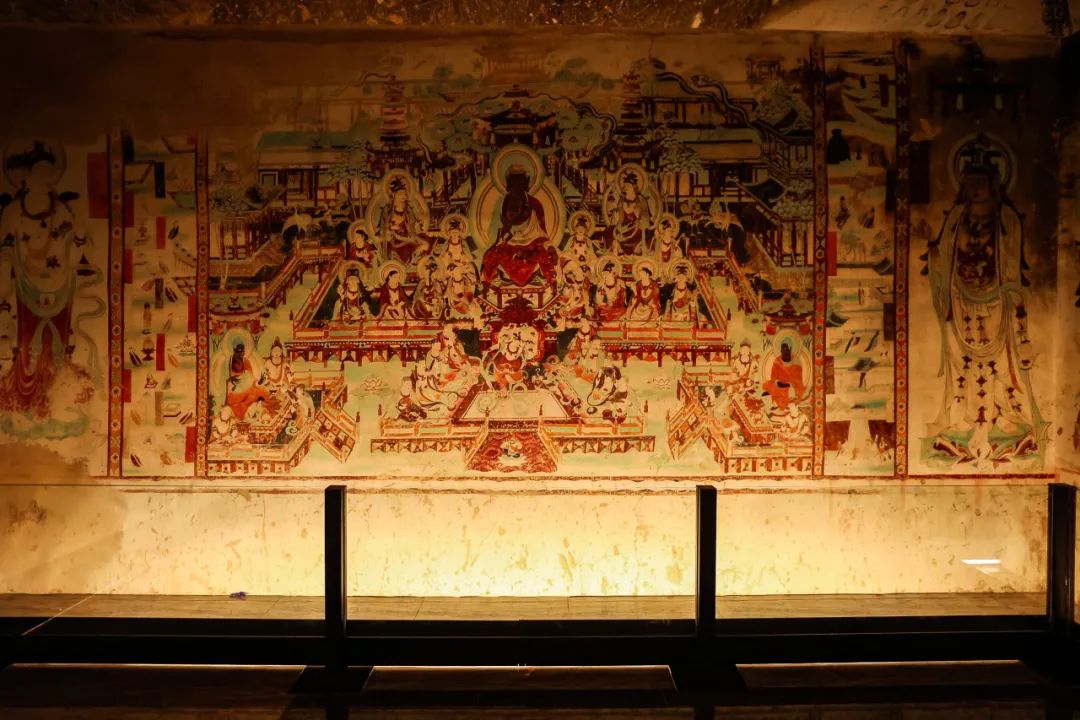 榆林窟中唐第25窟:被誉为“敦煌石窟艺术之冠”,窟内绘制的大型壁画观无量寿经变精致至极,表现佛国世界的富足美好,为敦煌壁画的代表作之一;