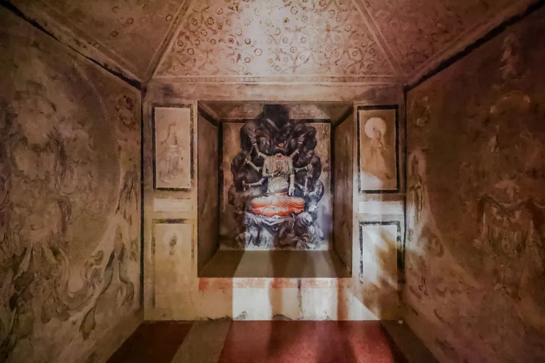 展览核心亮点之一是以尖端技术复制的九座洞窟,涵盖从北魏至元代跨越十个朝代的经典之作,既有展现多元文明交融的丝路盛景,亦有佛教中国化的艺术巅峰,还有藏经洞出土精美文物数字化回归成果。