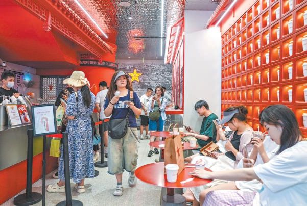 人民咖啡馆顾客盈门,独特的装饰带来新消费体验。