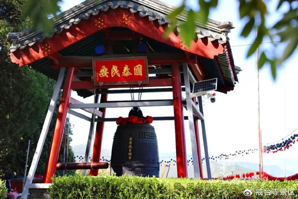 关注戒台寺官方微信公众号,定位“戒台寺景区”,转发本文并集赞,即可获得鸣钟资格:集满33赞可敲钟三声,集满66赞可敲钟六声,让钟声承载美好期许。(审核地点:戒台寺大钟亭)
