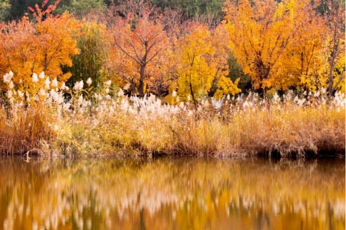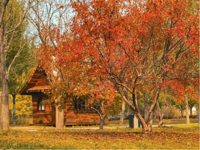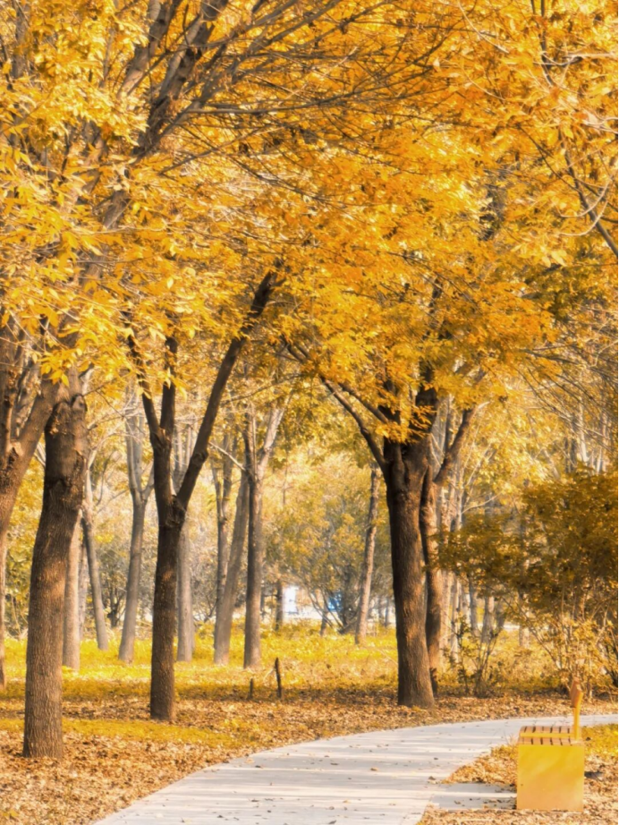 沿着南苑森林湿地公园蜿蜒的步道徐徐而行,感受秋风拂面,两旁银杏泛黄,枫叶染红,秋意正浓。