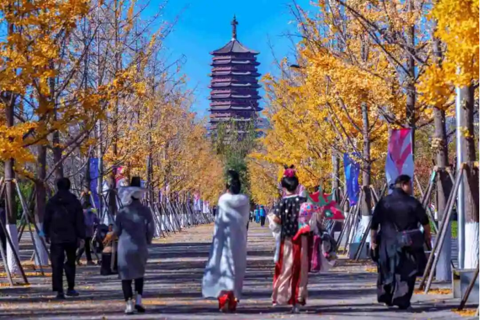 与银杏的金黄交织成画