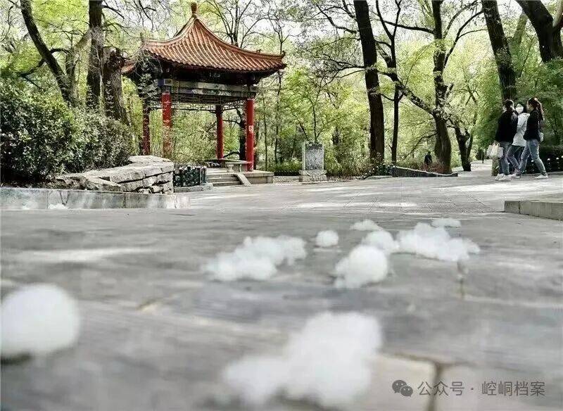 它位于平凉有名的柳湖公园,暮春时节,天朗气清,满空柳絮,飞扬上下 ,银光一片,与湖光山色辉映,因名“柳湖晴雪”。 诗句中记: “满目晴光映野塘,何来白雪遍空扬。纷纷玉屑随波舞,片片银花绕岸狂。月下沾衣疑欲湿,风前扑面不知凉。柳湖饶有西湖趣,惹得骚人兴自长”。