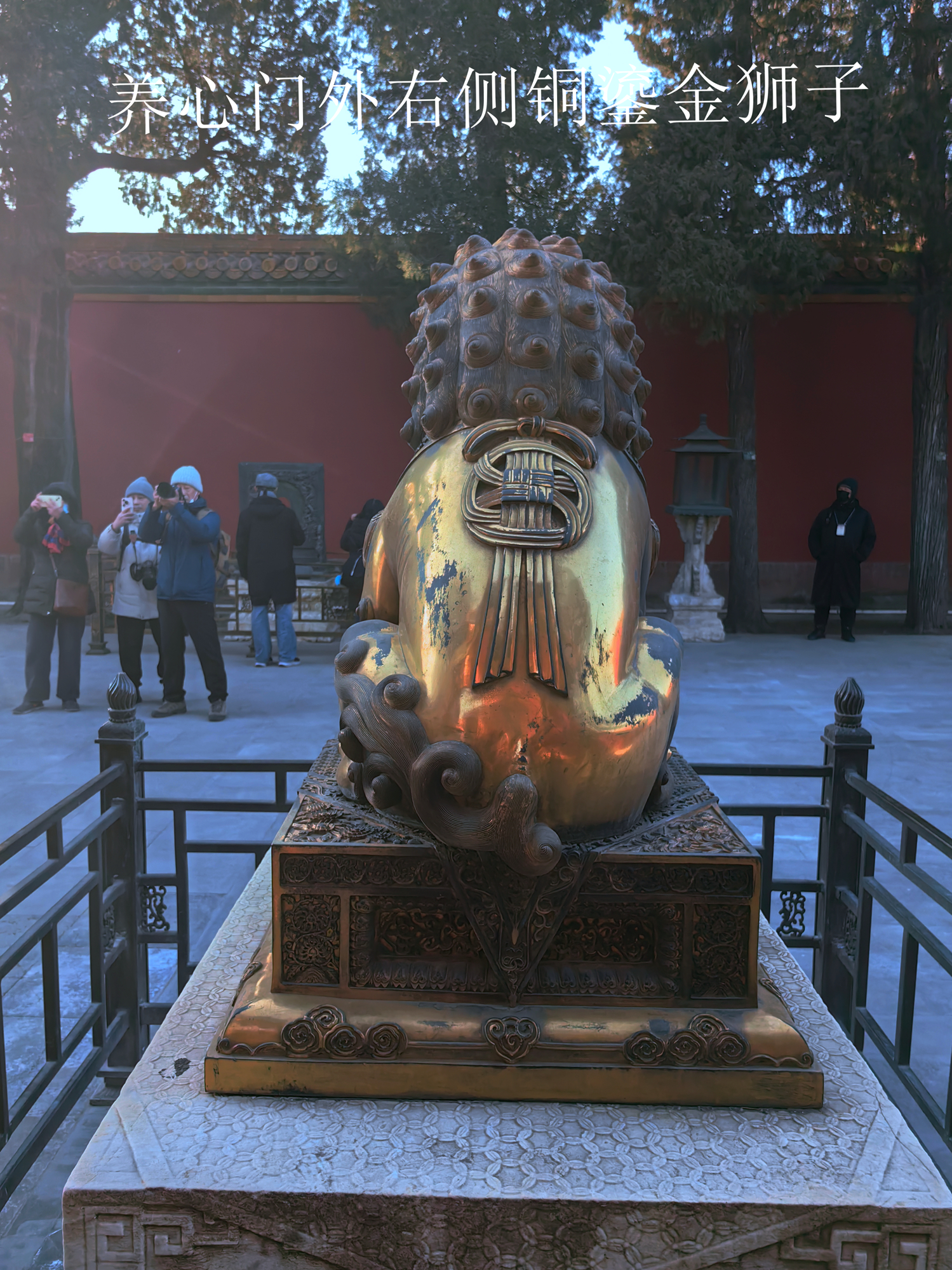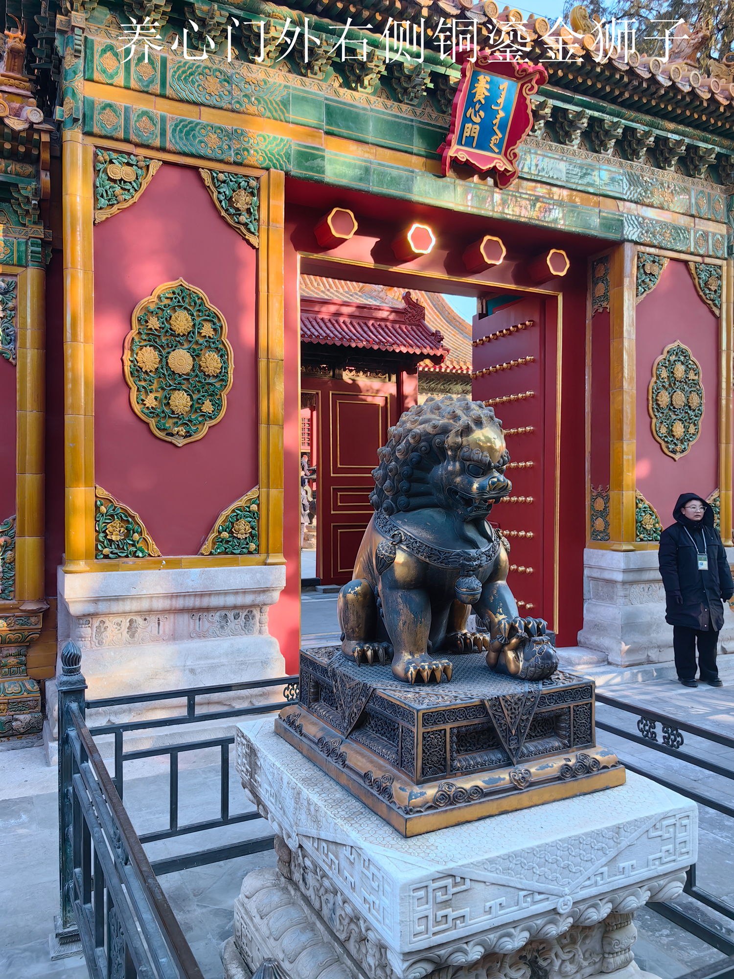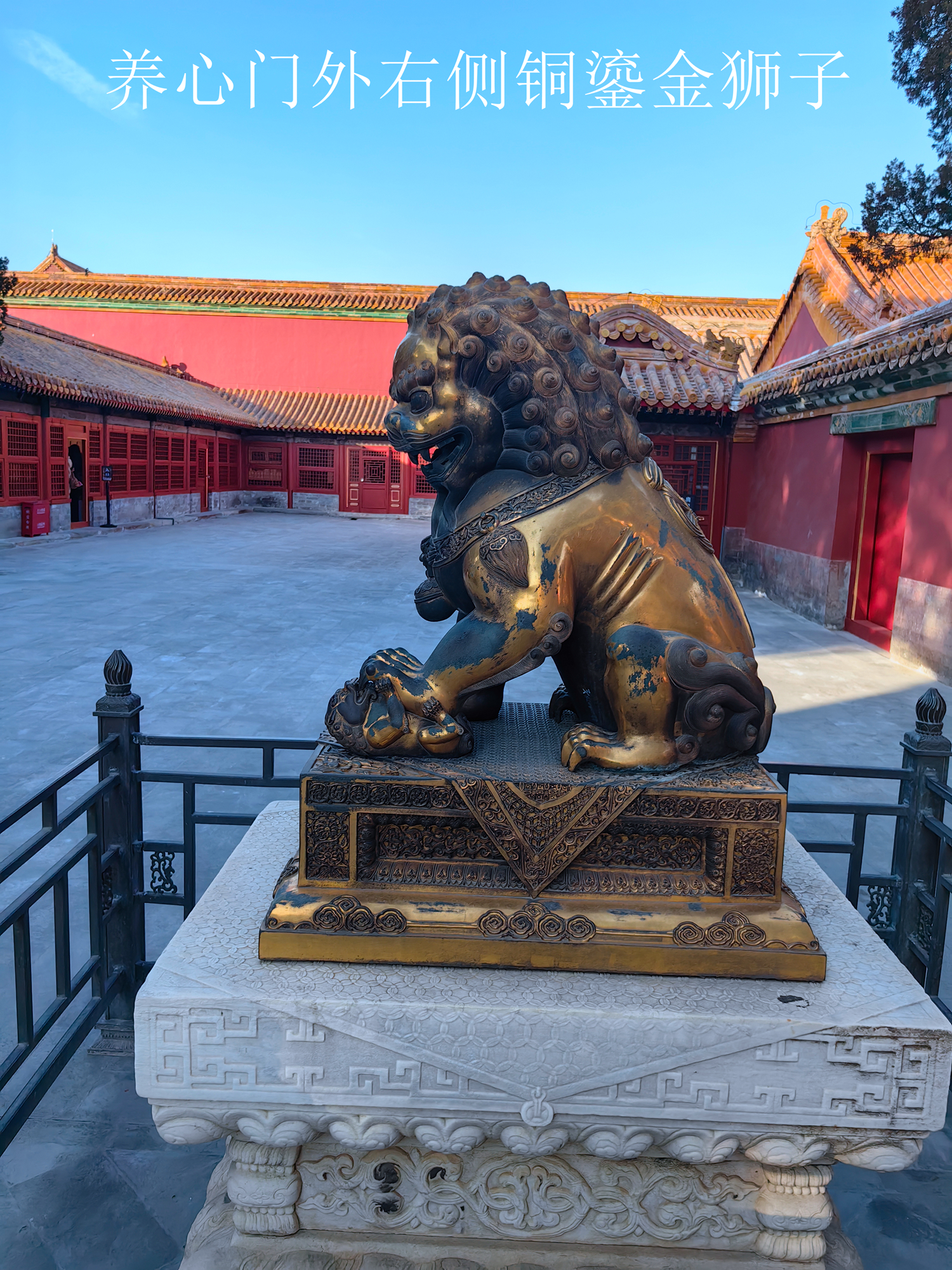 铜狮作为皇家守卫门户的瑞兽,象征着辟邪、祥瑞与皇家威严。养性门的铜狮不仅是建筑装饰,更是清代宫廷文化与皇家礼仪的实物见证,反映了当时对“修身养性”理念的推崇,以及对内廷秩序与家族传承的重视。
