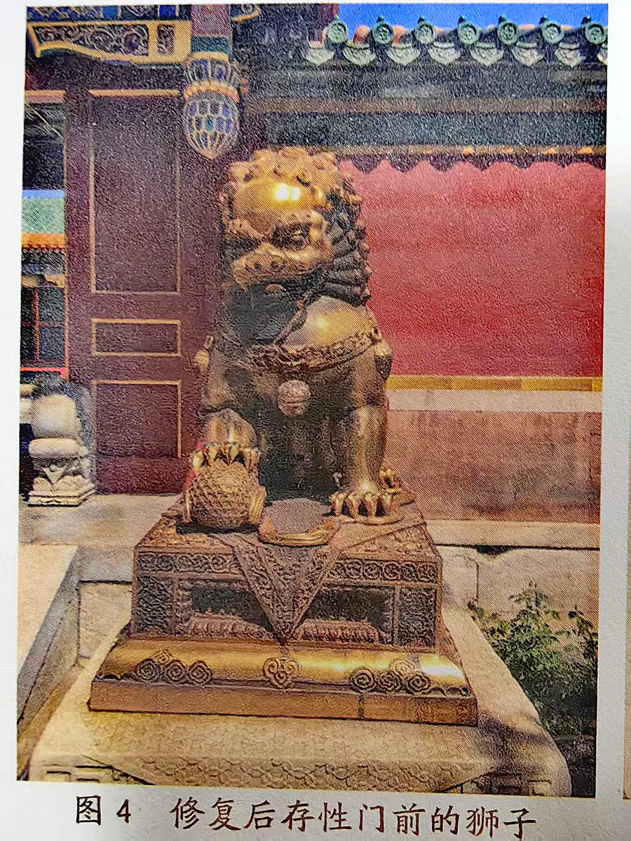 修复后存性门前的狮子照片翻拍于“探究紫禁城-----首都科普主题研学基地课程知识手册”梁美侠主编、邓晨钰副主编