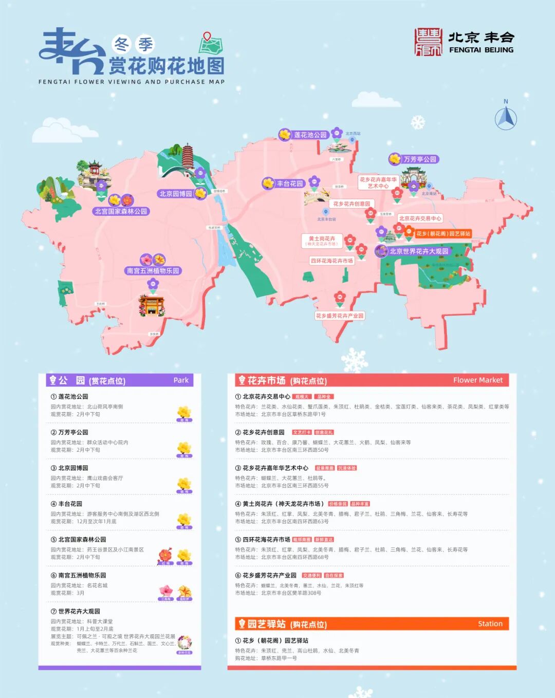 为满足市民朋友们赏花、购花需求,丰台区正式发布冬季赏花购花地图,向市民朋友正式发出一封冬日邀请函。赏花购花地图将串联起散落在公园、市场、街角的盎然生机,将“凛冬无花”变为“处处有景”,让市民循着花香便能遇见冬日里的柔软诗意!