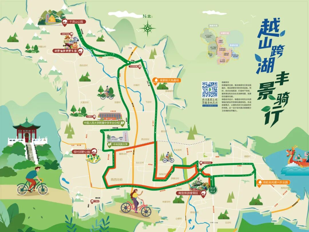 为倡导绿色骑行新风尚,践行“全民共享、全民共乐、全民健康”理念,王佐镇以“骑行 生态科普”为核心,打造了这条串联全镇精华的环镇精品骑游路线。线路全长33公里,起点与终点均设于南宫世界地热博览园,全程绿荫密布,将高校园区、森林公园、山水地标与人文古迹无缝串联,既是一条骑行道,更是一幅展现王佐“全域旅游小镇”魅力的移动画卷。