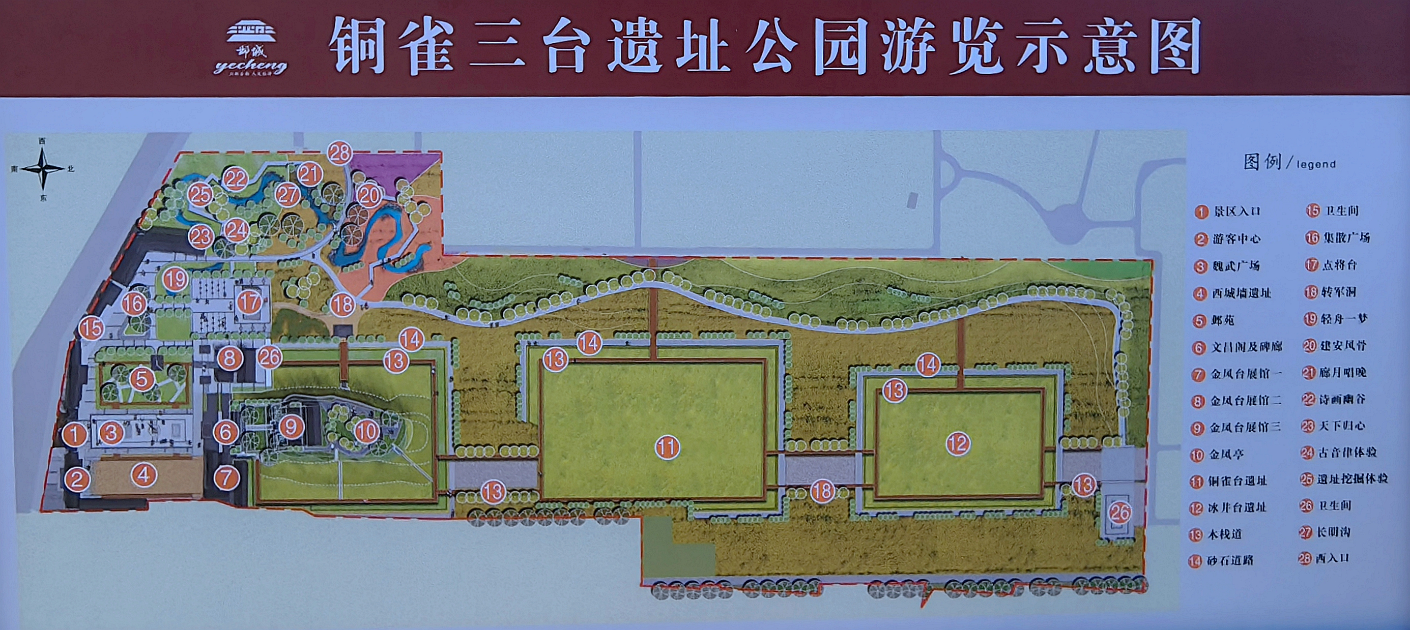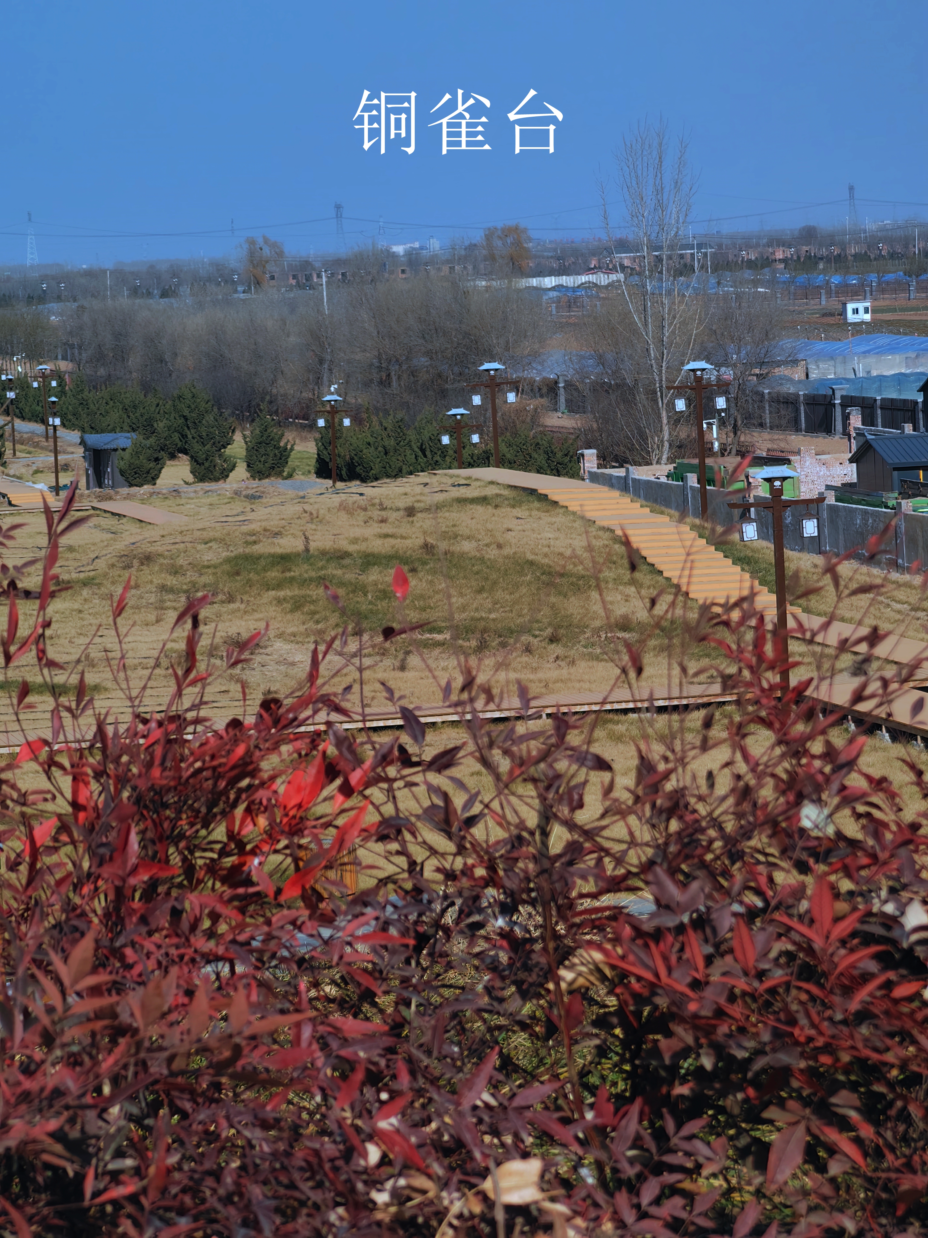 东风不与周郎便,铜雀春深锁二乔,这两句诗出自唐代诗人杜牧的《赤壁》:“东风不与周郎便,铜雀春深锁二乔。”它以三国的赤壁之战为背景,借东风之便、铜雀台之设,暗喻历史偶然性对命运的影响。而“铜雀三台”金凤台(金虎台)、铜雀台、冰井台,作为曹操在邺城建造的宏伟建筑群,不仅是三国时期政治与军事的象征,也承载了丰富的文化记忆。罗贯中《三国演义》:将铜雀台与二乔命运捆绑,强化了三国叙事的戏剧性。铜雀台不仅是权力符号,也成了文人凭吊历史、思考命运无常的意象。如今,当我们站在荒草丛生的铜雀台遗址前,或吟诵“东风不与周郎便”时,不仅是在回顾三国风云,也是在凝视时间本身那些曾经的金戈铁马、诗酒风流,最终都化为尘土,唯有诗句与传说,让一片夯土持续生长出新的意义。这正是历史的重量,也是文学的光华。铜雀三台值得来参观。