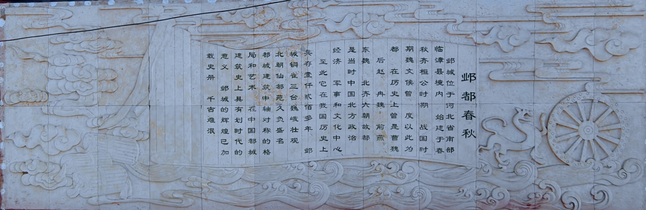 邺文化浮雕墙(邺城春秋浮雕)衬墙不美观,缺失每个浮雕故事提示和设计师设计理念,浮雕边道路环境不好,浮雕缺失保养太脏,使浮雕失去美感。