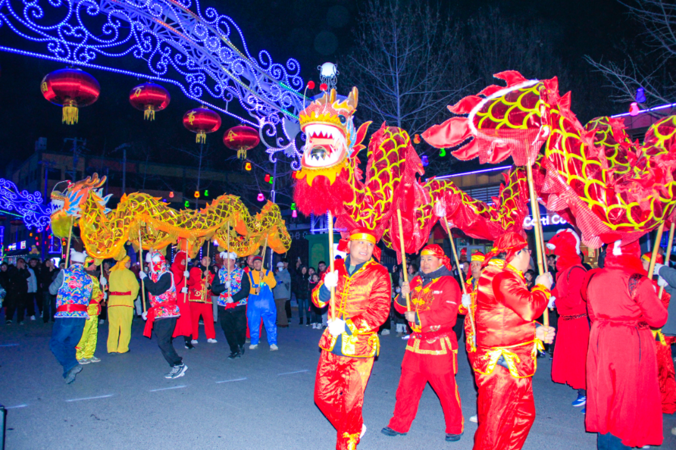 跟随手持非遗鱼灯的队伍穿梭巡游