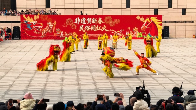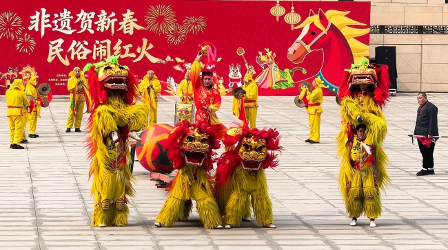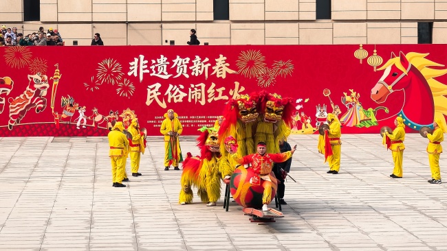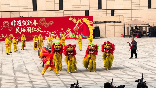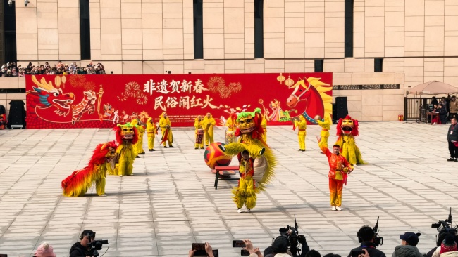 2026年,丙午马年, 快来非遗馆, 共度一个欢腾热烈的中国年! 为丰富广大观众的春节文化生活,迎接元宵节的到来,中国工艺美术馆中国非遗馆联合中国共产党历史展览馆,2月28日、3月1日,共同举办“非遗贺新春 民俗闹红火”系列活动。本次活动特邀来自北京、陕西、山西、浙江、内蒙古等8个省(区、市)的民俗展演团队,近600位表演人员,集中呈现曾庄大鼓、麒麟舞、寿阳高跷竹马戏、蒙古族马头琴音乐、龙舞(浦江板凳龙)、龙舞(曲周龙灯)、花鼓灯(蚌埠花鼓灯)等14项民俗展。14项民俗展演项目在中国共产党历史展览馆广场举行已经圆满收官。民俗展演精彩绝伦,场面热闹非凡。观展人潮如涌受到热烈欢迎。