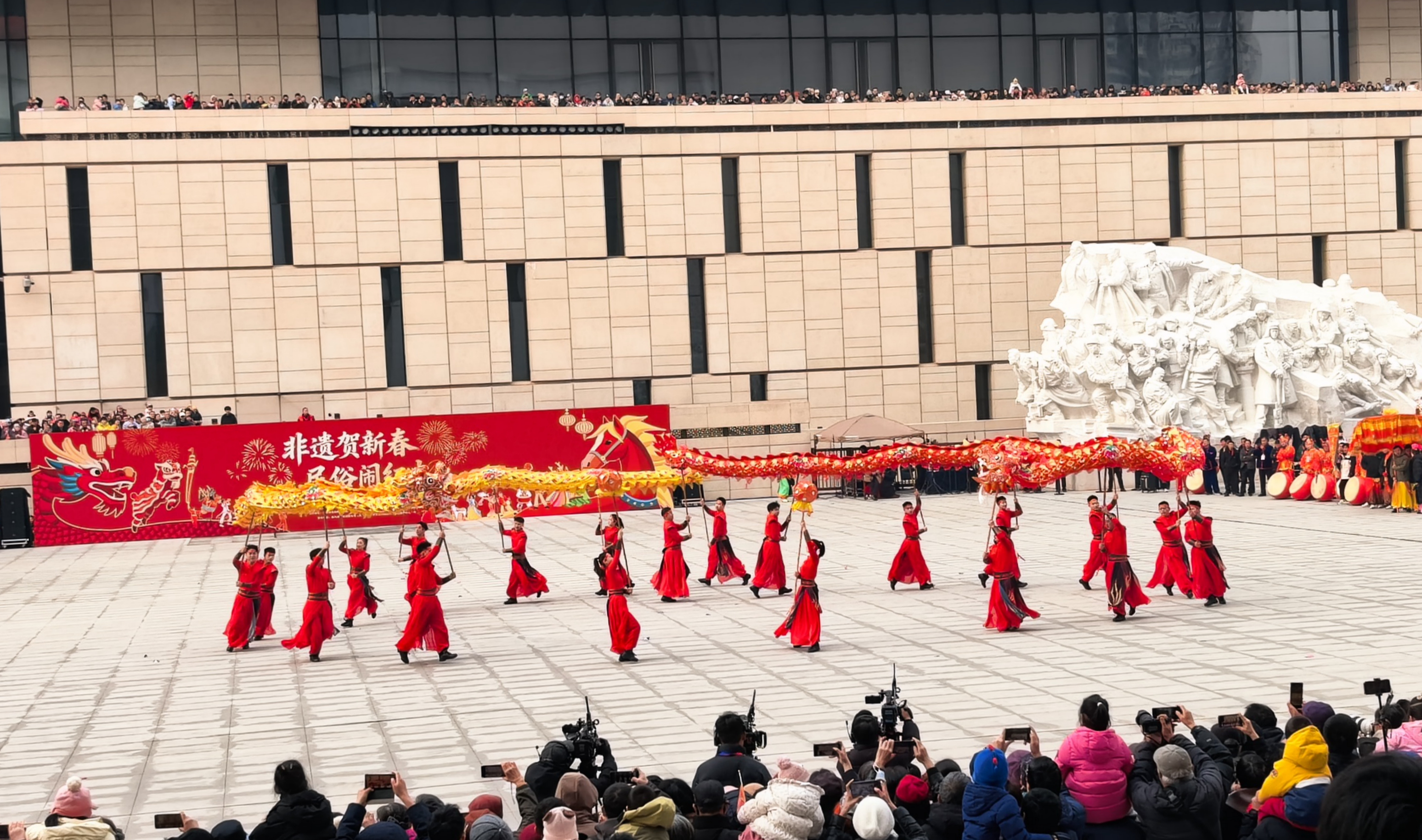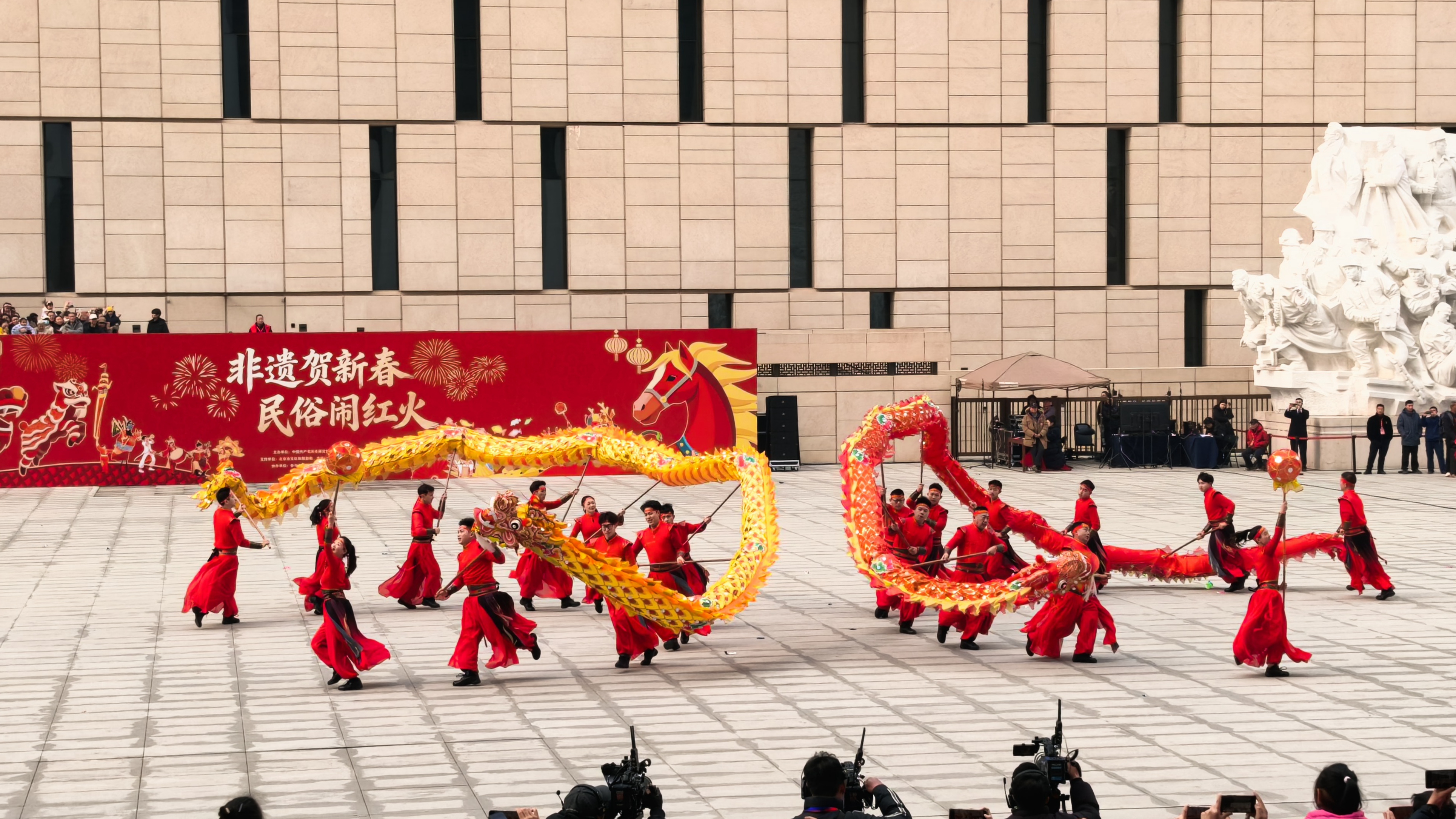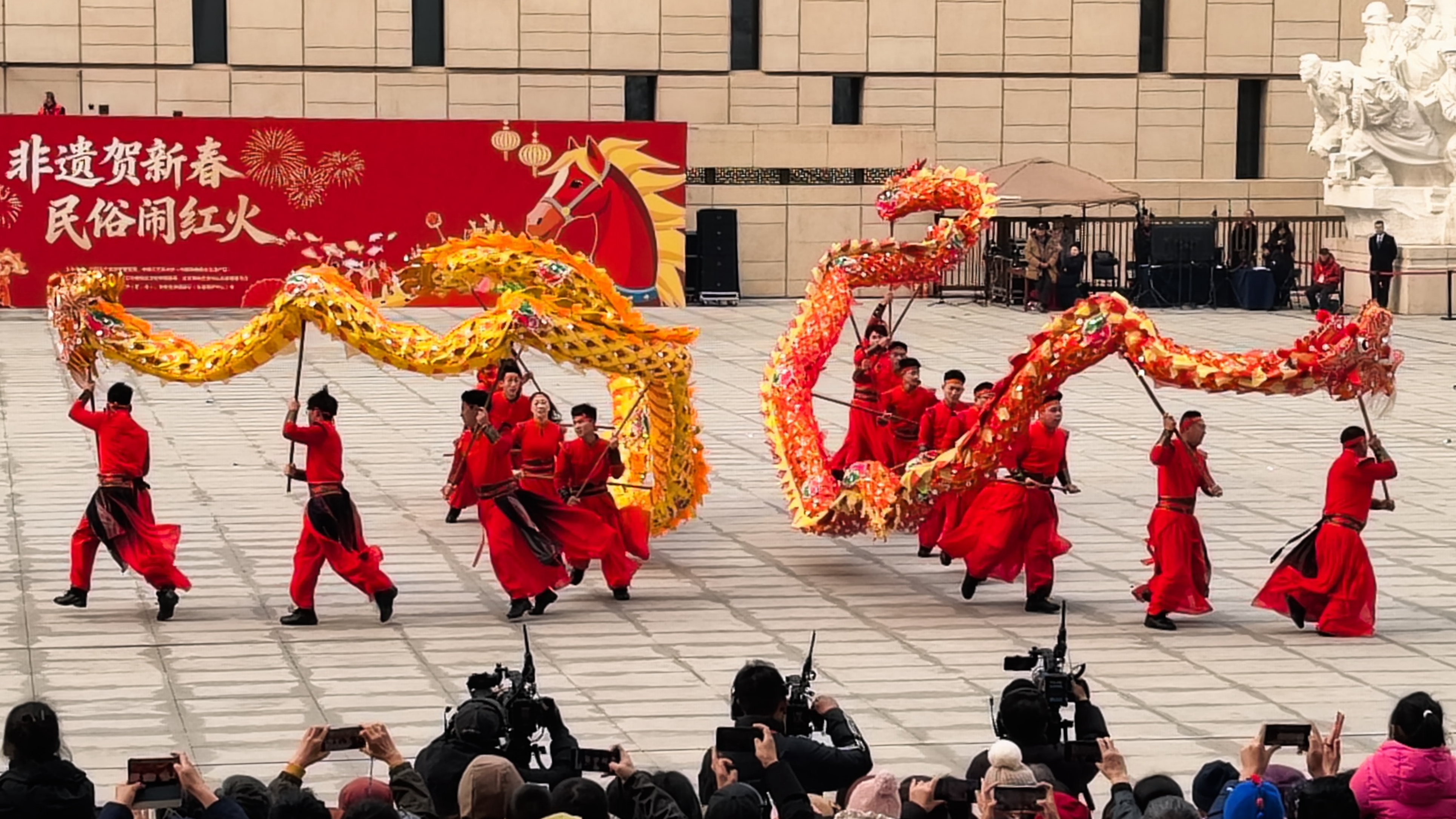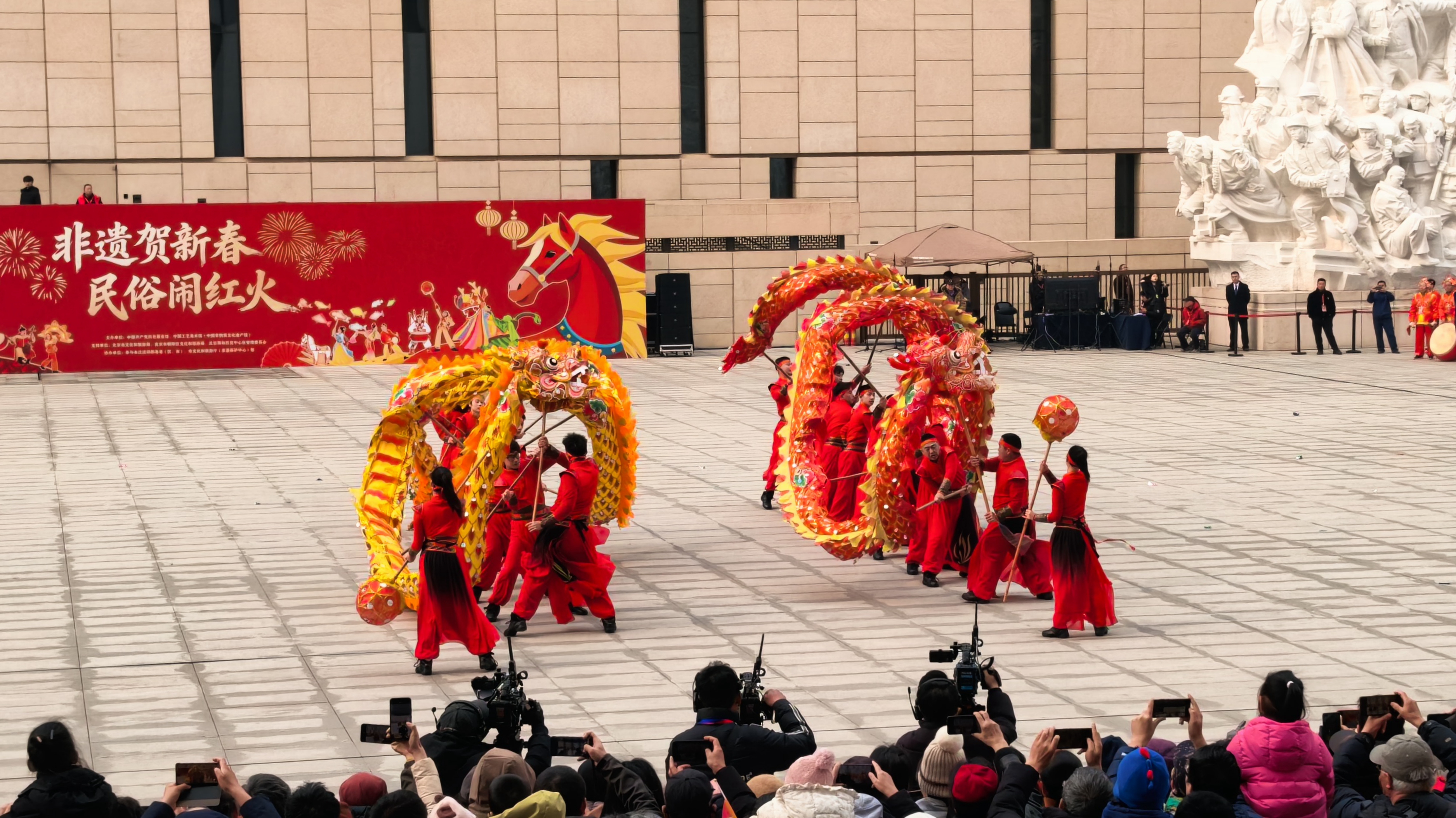 2026年,丙午马年,在 中国工艺美术馆、中国非遗馆,中国共产党历史展览馆 共度一个欢腾热烈的中国年! 为丰富广大观众的春节文化生活,迎接元宵节的到来,中国工艺美术馆中国非遗馆联合中国共产党历史展览馆,在2月28日、3月1日,共同举办了“非遗贺新春 民俗闹红火”系列活动。本次活动特邀来自北京、陕西、山西、浙江、内蒙古等8个省(区、市)的民俗展演团队,近600位表演人员,集中呈现曾庄大鼓、麒麟舞、寿阳高跷竹马戏、蒙古族马头琴音乐、龙舞(浦江板凳龙)、龙舞(曲周龙灯)、花鼓灯(蚌埠花鼓灯)等14项民俗展。14项民俗展演项目在中国共产党历史展览馆广场举行已经圆满收官。民俗展演精彩绝伦,场面热闹非凡。观展人潮如涌受到热烈欢迎。