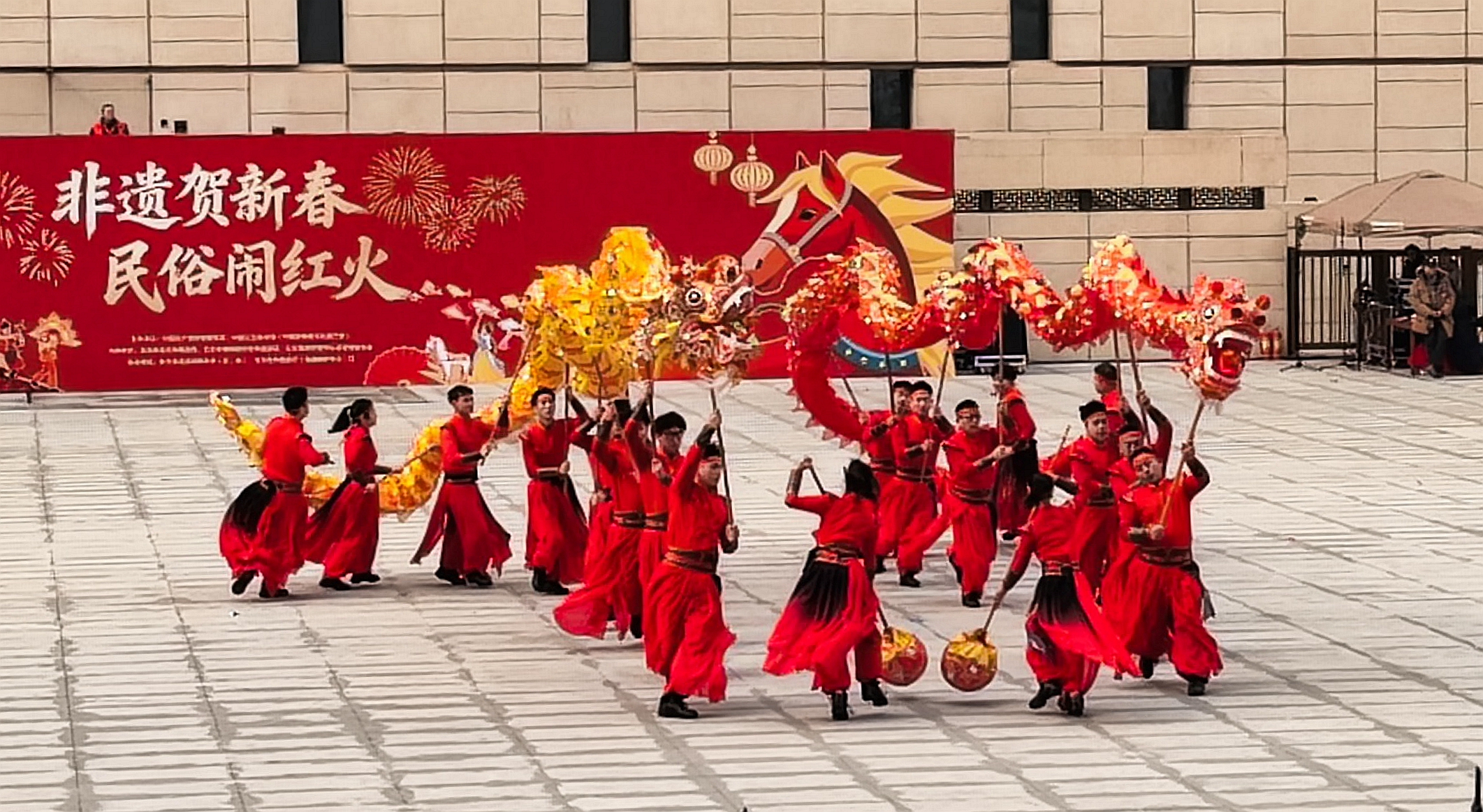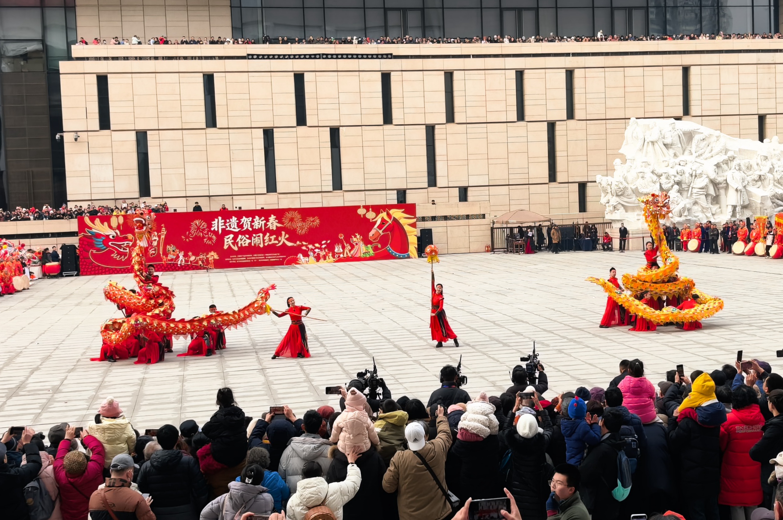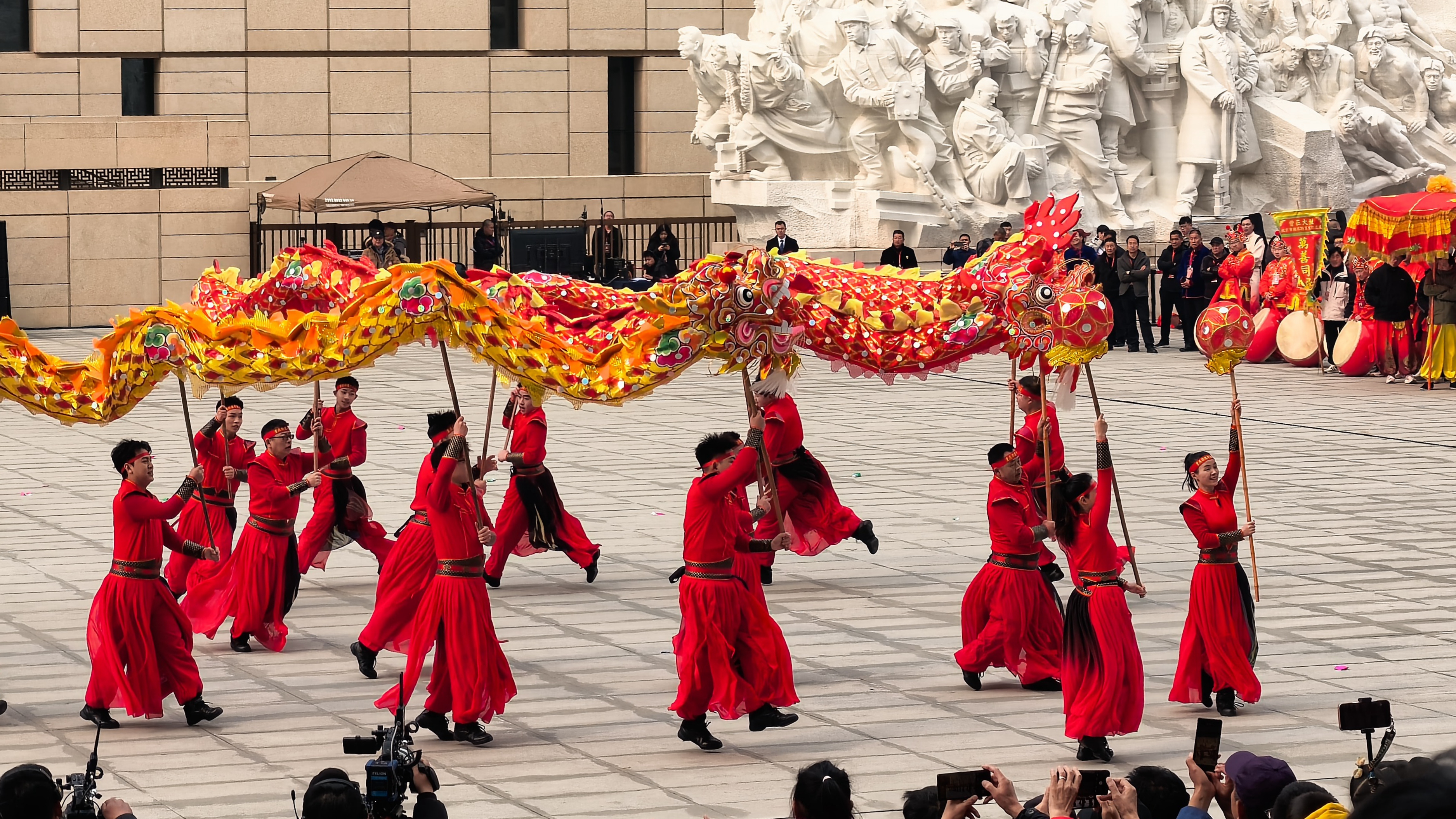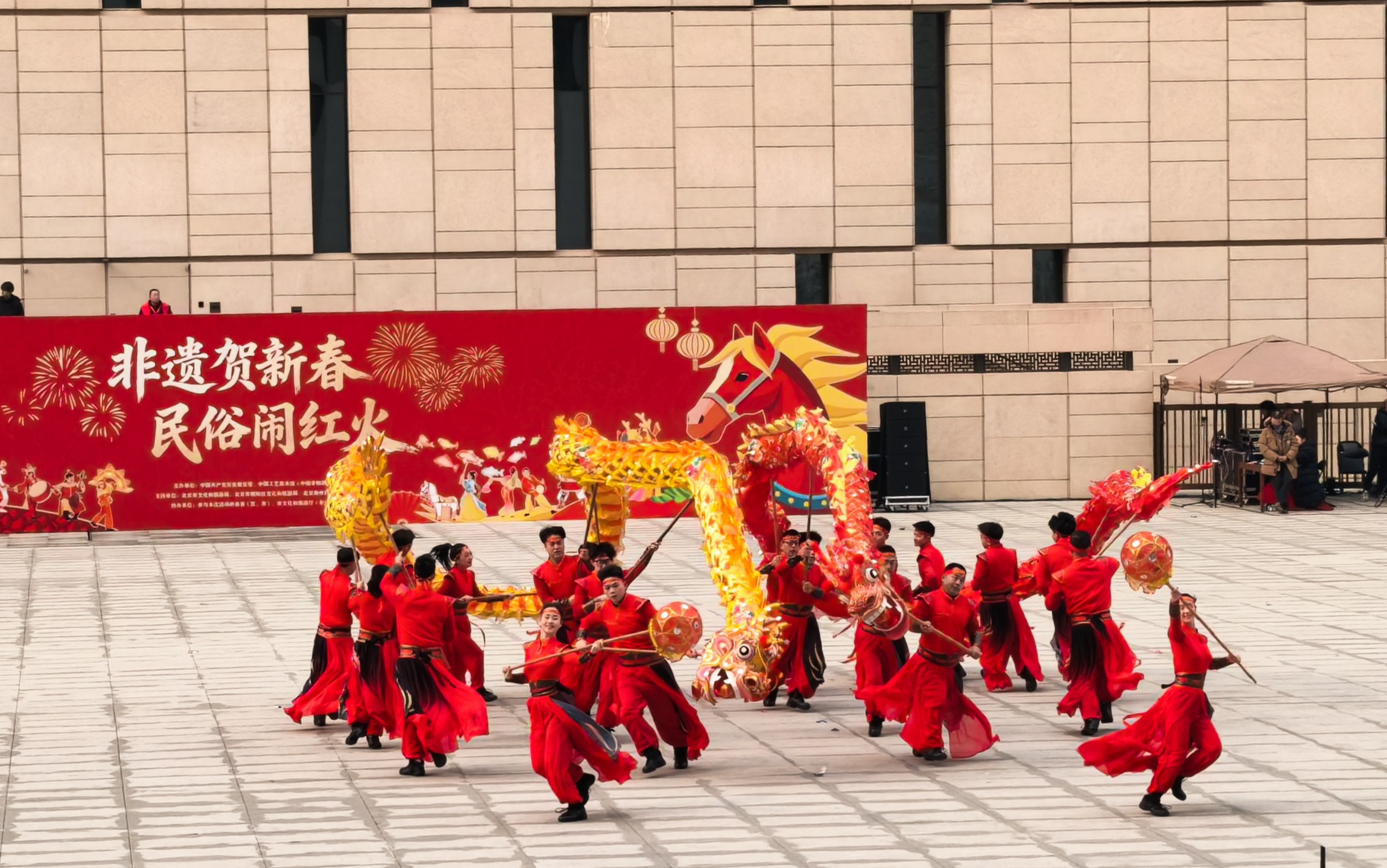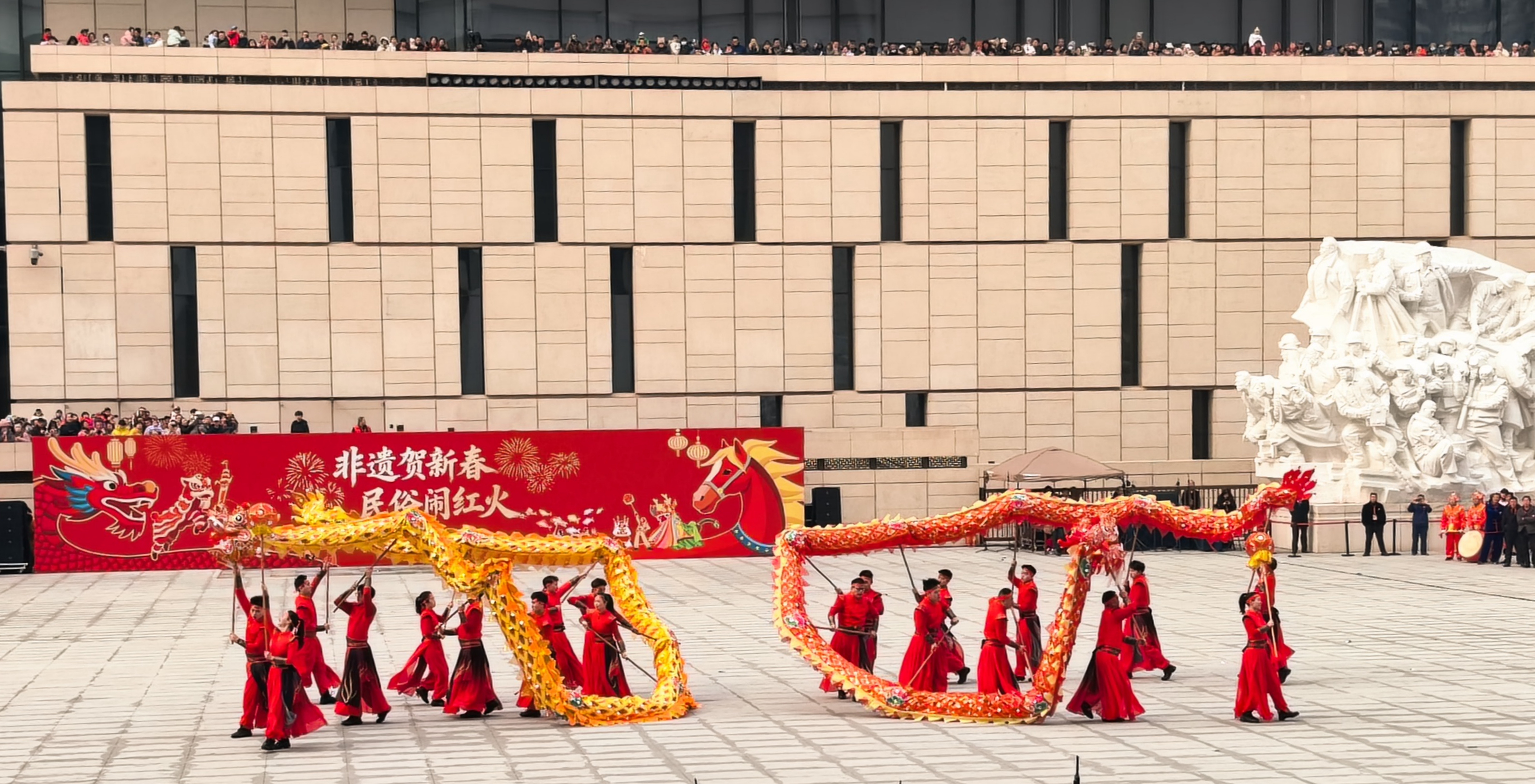 2026年,丙午马年,在 中国工艺美术馆、中国非遗馆,中国共产党历史展览馆 共度一个欢腾热烈的中国年! 为丰富广大观众的春节文化生活,迎接元宵节的到来,中国工艺美术馆中国非遗馆联合中国共产党历史展览馆,在2月28日、3月1日,共同举办了“非遗贺新春 民俗闹红火”系列活动。本次活动特邀来自北京、陕西、山西、浙江、内蒙古等8个省(区、市)的民俗展演团队,近600位表演人员,集中呈现曾庄大鼓、麒麟舞、寿阳高跷竹马戏、蒙古族马头琴音乐、龙舞(浦江板凳龙)、龙舞(曲周龙灯)、花鼓灯(蚌埠花鼓灯)等14项民俗展。14项民俗展演项目在中国共产党历史展览馆广场举行已经圆满收官。民俗展演精彩绝伦,场面热闹非凡。观展人潮如涌受到热烈欢迎。