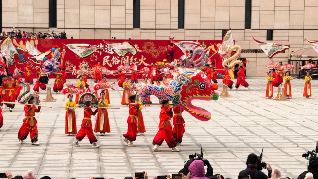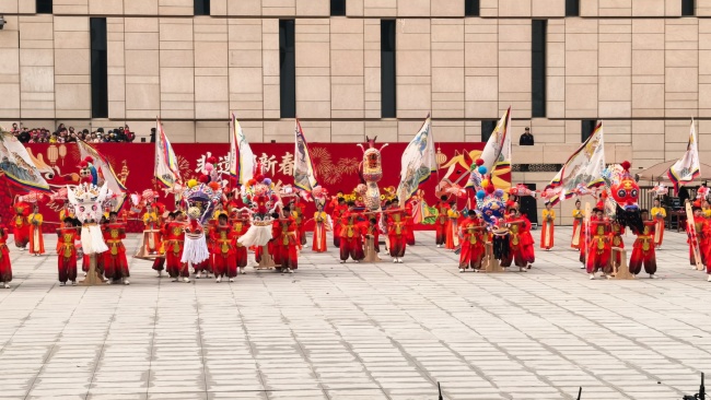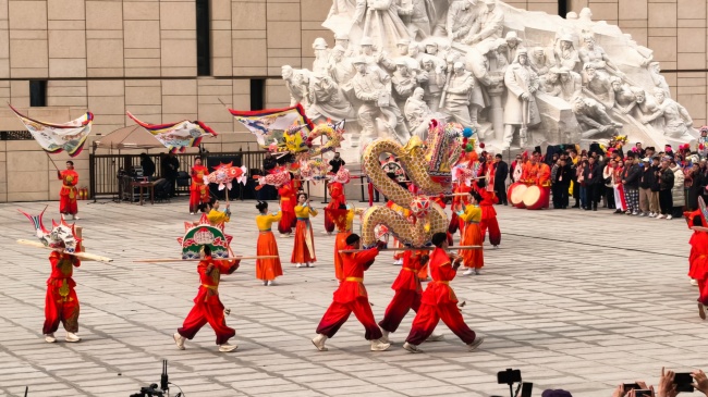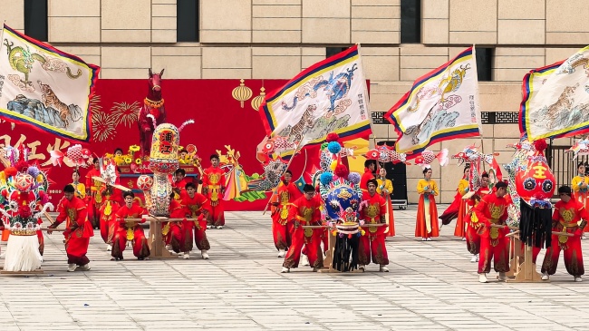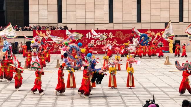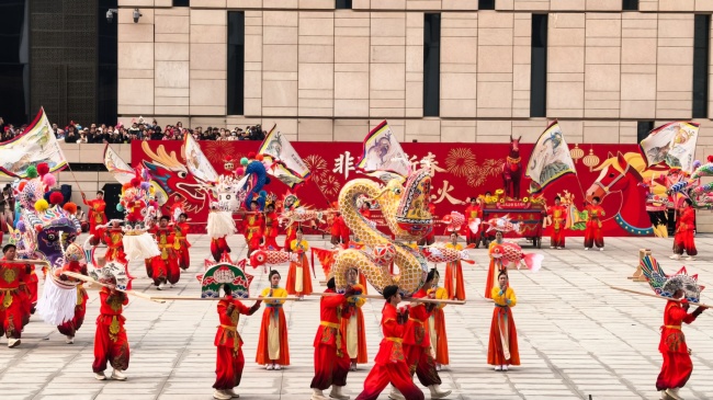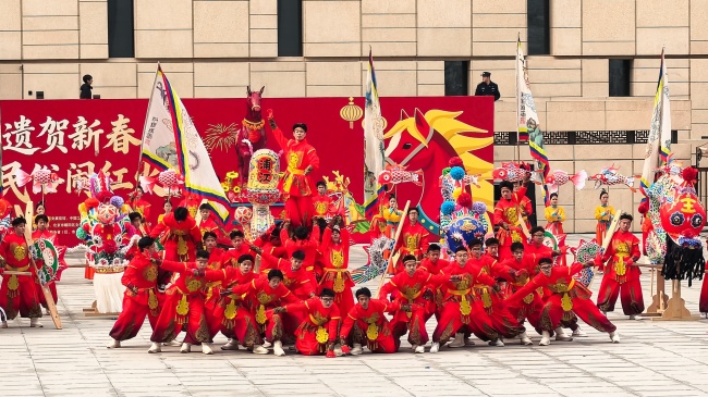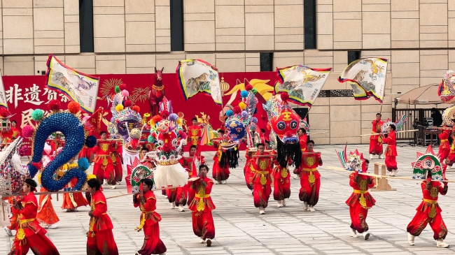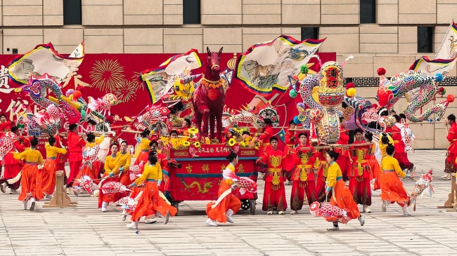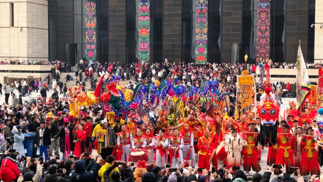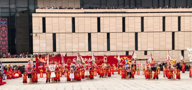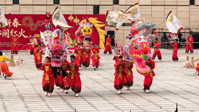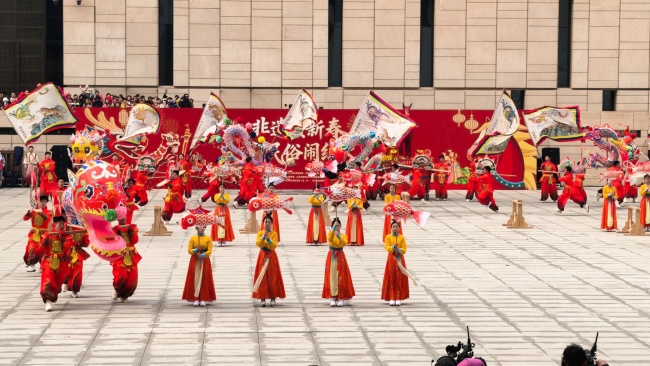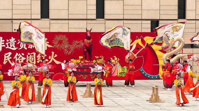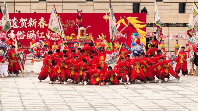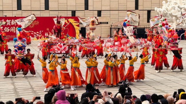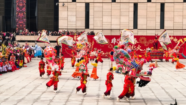 浙江“浦江板凳龙”作为压轴环节,浦江板凳龙的登场将现场气氛推向最高潮。龙身上精美的灯彩由当地书法家、美术家绘制。在表演者娴熟操控下,长龙灵活变换“一字长龙阵”“大团圆”等阵式,蜿蜒游走,恢弘大气。浙江“浦江擂马” 浦江擂马是与板凳龙一同表演的项目,奔腾的“擂马”与蜿蜒的长龙相伴共舞,生动展现了昂扬向上的“龙马精神”,与马年主题紧密呼应。浙江“鱼灯”鱼灯穿梭在板凳龙和擂马之间,灯影熠熠。鱼灯以其灵动的姿态和明亮的灯光,象征着“年年有余”,与其他项目共同构成了一幅多姿多彩、吉祥喜庆的民俗画卷。