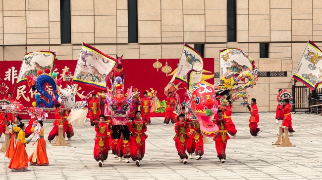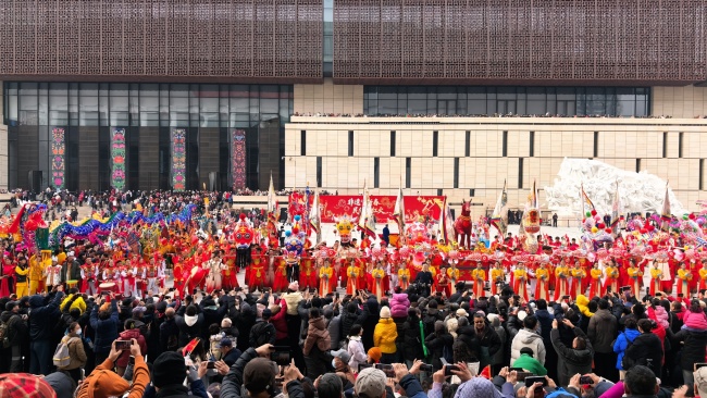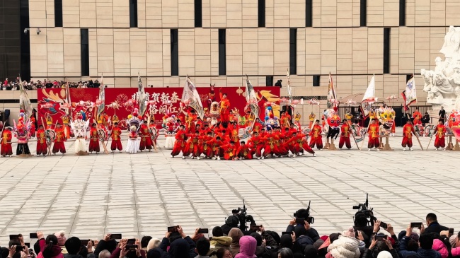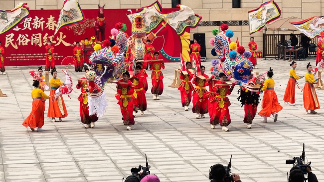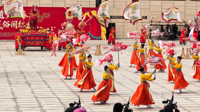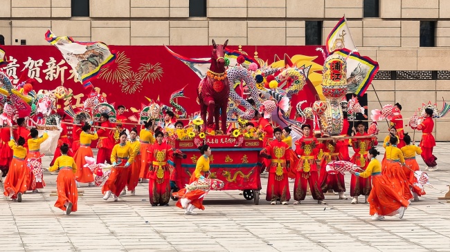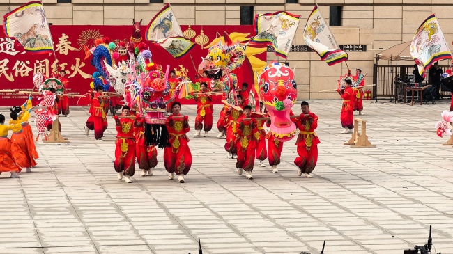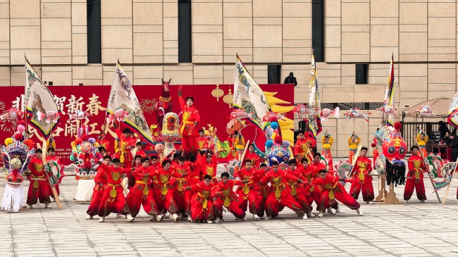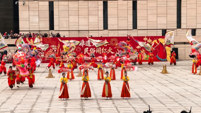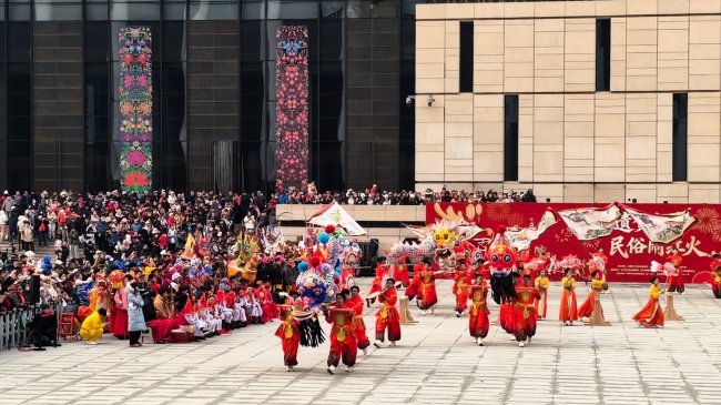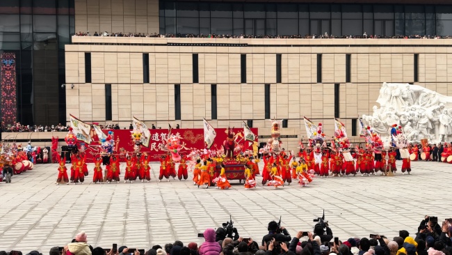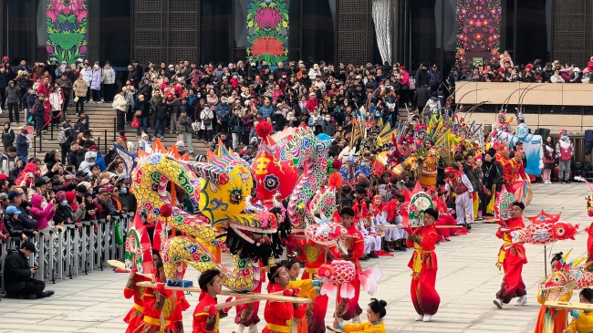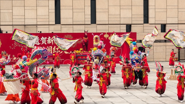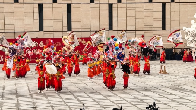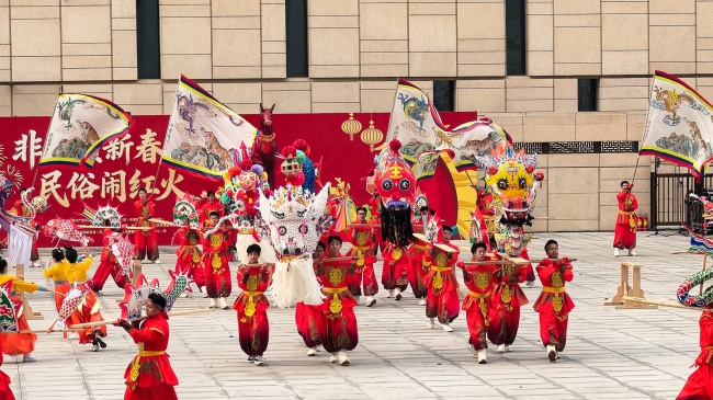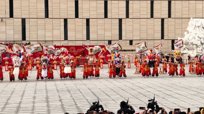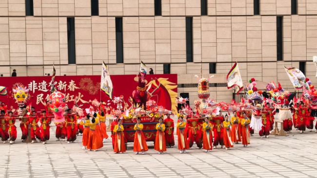 浙江“浦江板凳龙”作为压轴环节,浦江板凳龙的登场将现场气氛推向最高潮。龙身上精美的灯彩由当地书法家、美术家绘制。在表演者娴熟操控下,长龙灵活变换“一字长龙阵”“大团圆”等阵式,蜿蜒游走,恢弘大气。浙江“浦江擂马” 浦江擂马是与板凳龙一同表演的项目,奔腾的“擂马”与蜿蜒的长龙相伴共舞,生动展现了昂扬向上的“龙马精神”,与马年主题紧密呼应。浙江“鱼灯”鱼灯穿梭在板凳龙和擂马之间,灯影熠熠。鱼灯以其灵动的姿态和明亮的灯光,象征着“年年有余”,与其他项目共同构成了一幅多姿多彩、吉祥喜庆的民俗画卷。