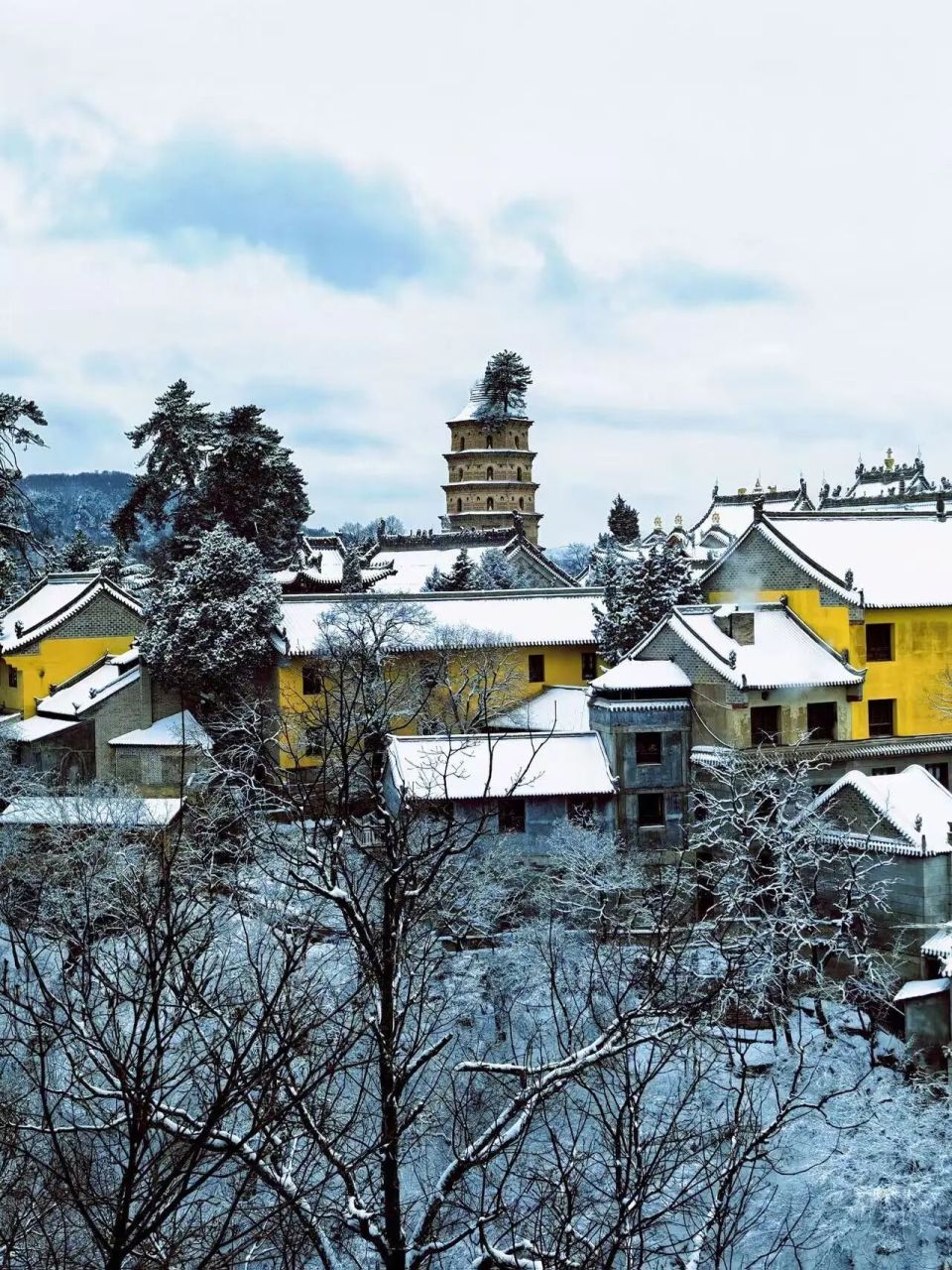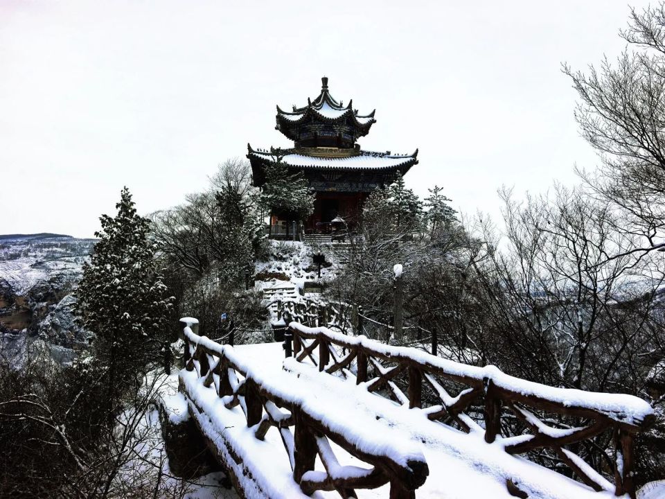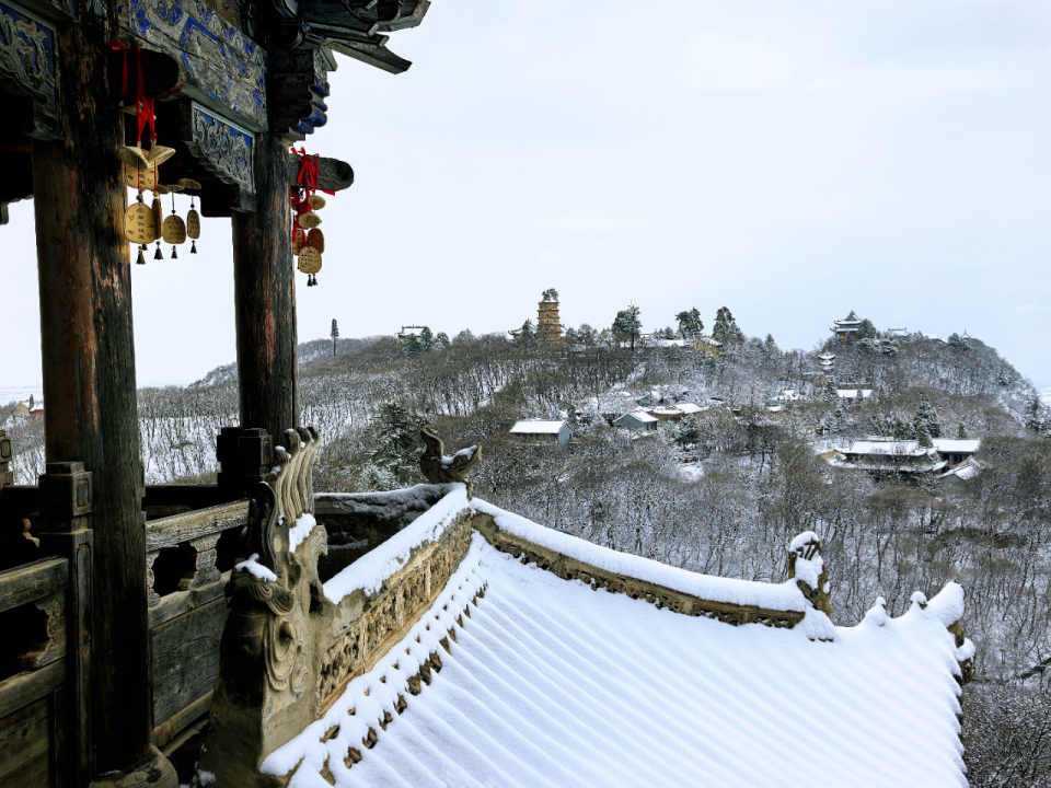 一切喧嚣,在一夜之间安静下来。崆峒山的轮廓被雪重新勾勒,一片枯澹与清旷。每一场雪,其实都是久别重逢。它从宋人的画意里飘来,带着范宽《雪景寒林》的幽深,带着马远《晓雪山行图》的清旷,落在今日崆峒的飞檐与松枝上。这是山与雪的相约,那些纷扬的心事,与无言的懂得,早已在千年的凝视中,化作一片寂静。