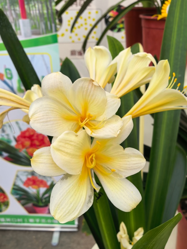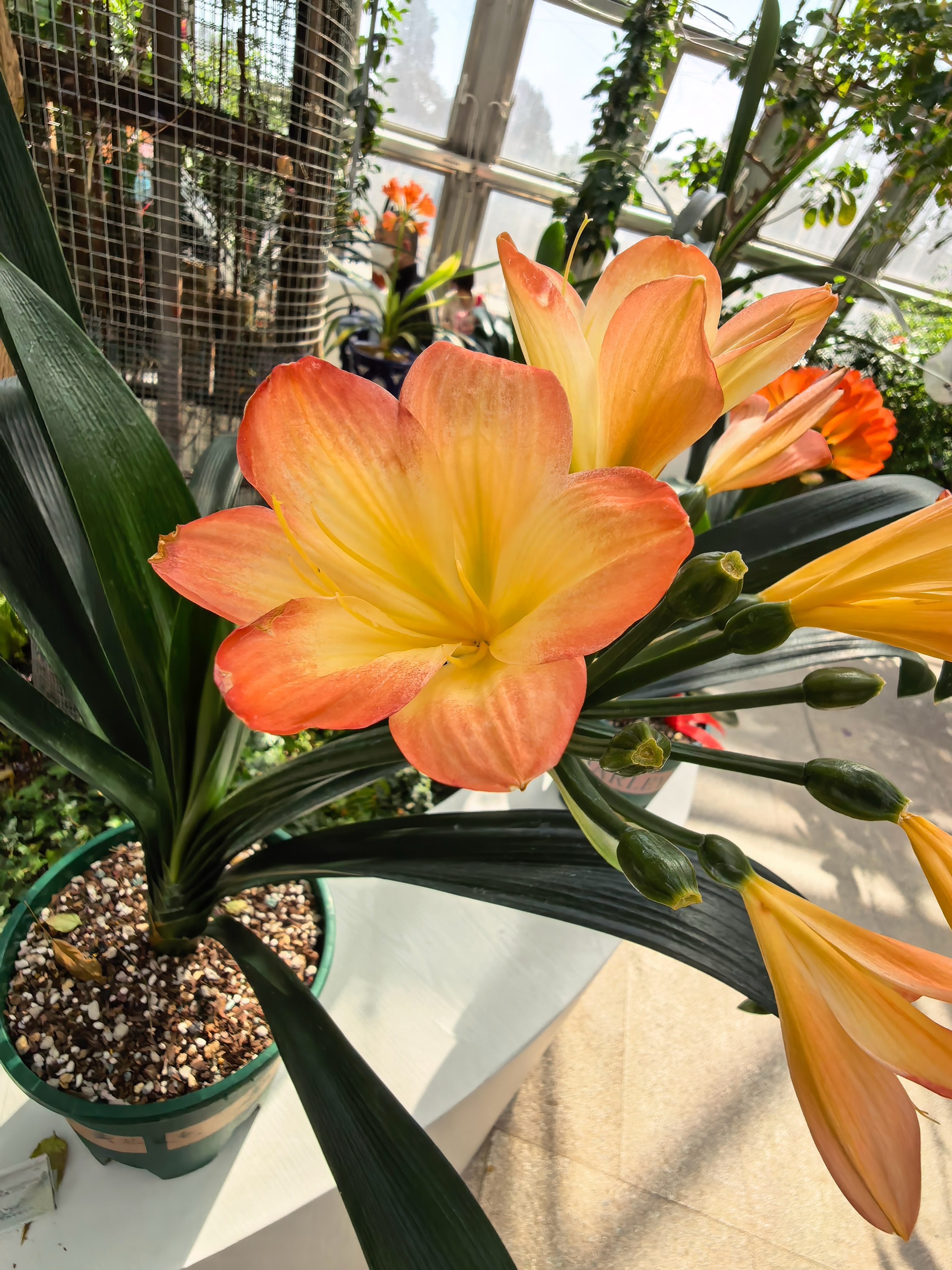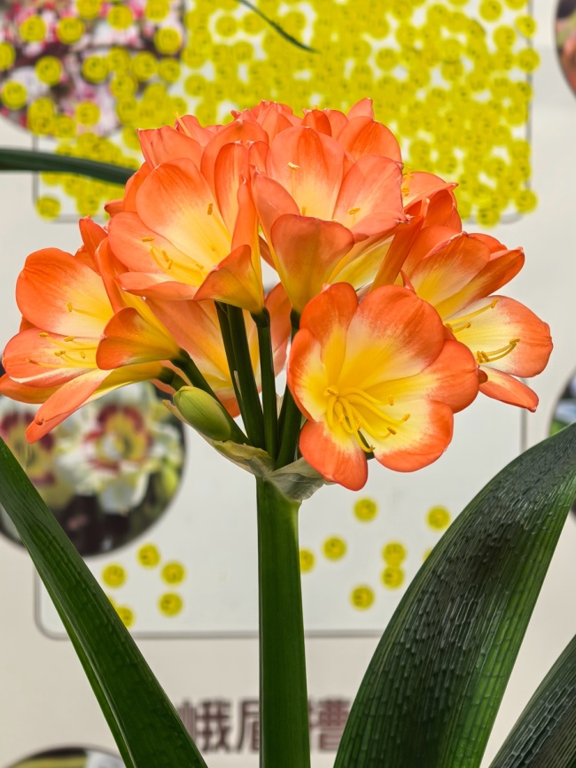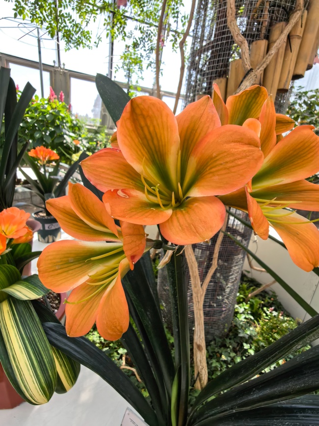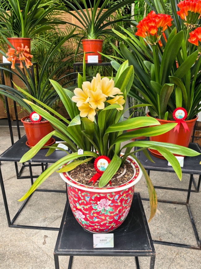 本次展览共展出20余个种(含品种)、100余株君子兰,囊括大花君子兰、奇异君子兰、有茎君子兰等原种,‘佛光’君子兰、‘重瓣牡丹彩’君子兰、‘金碧辉煌’君子兰、‘凤凰展翅’君子兰、‘翡翠屏’君子兰、‘黄百合’君子兰、[西芬斯女儿]君子兰等优秀品种,让游客沉浸式感受其叶形挺拔、花姿端庄的独特之美。