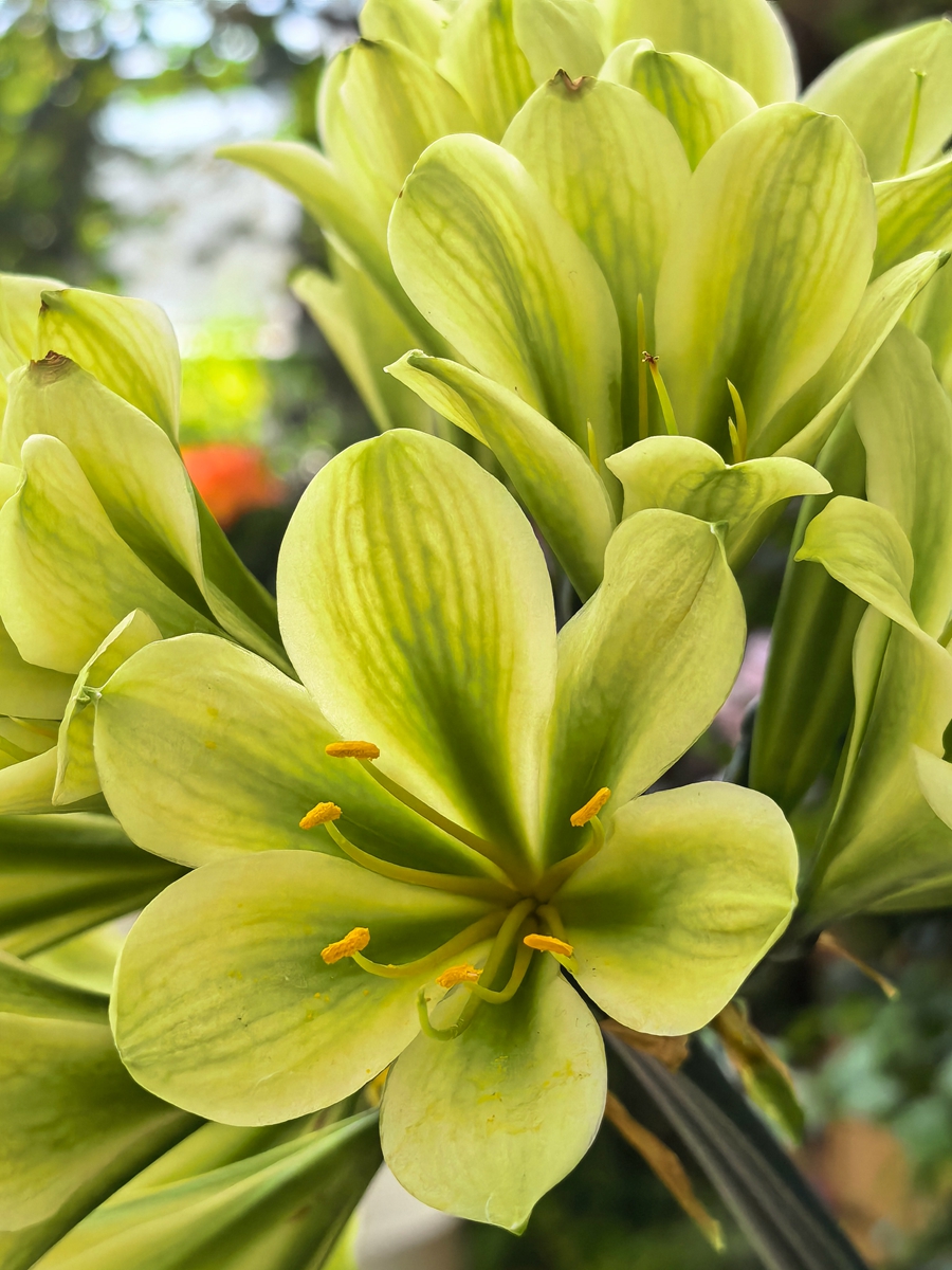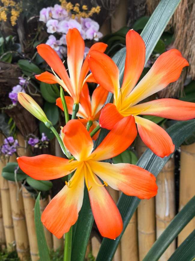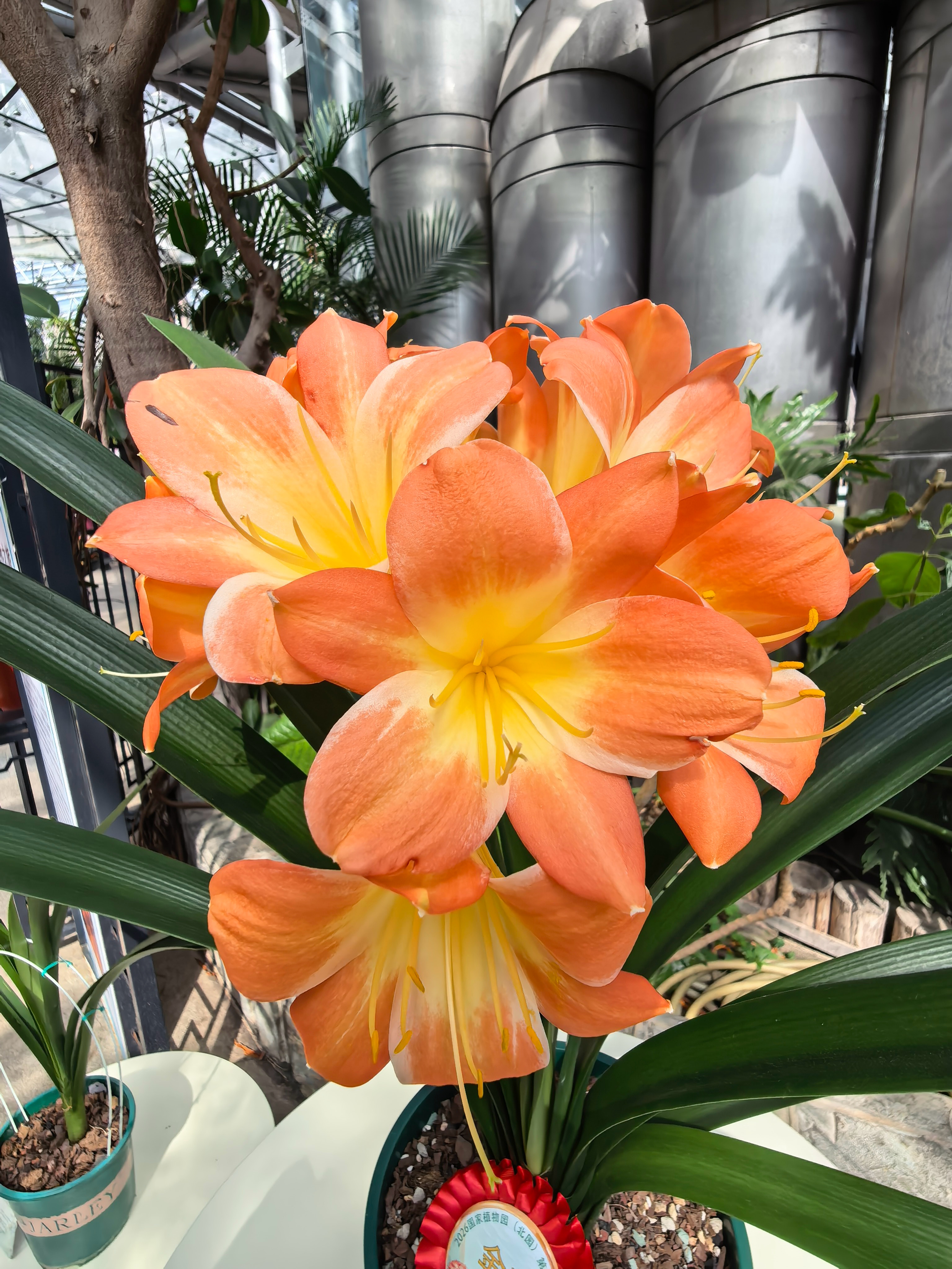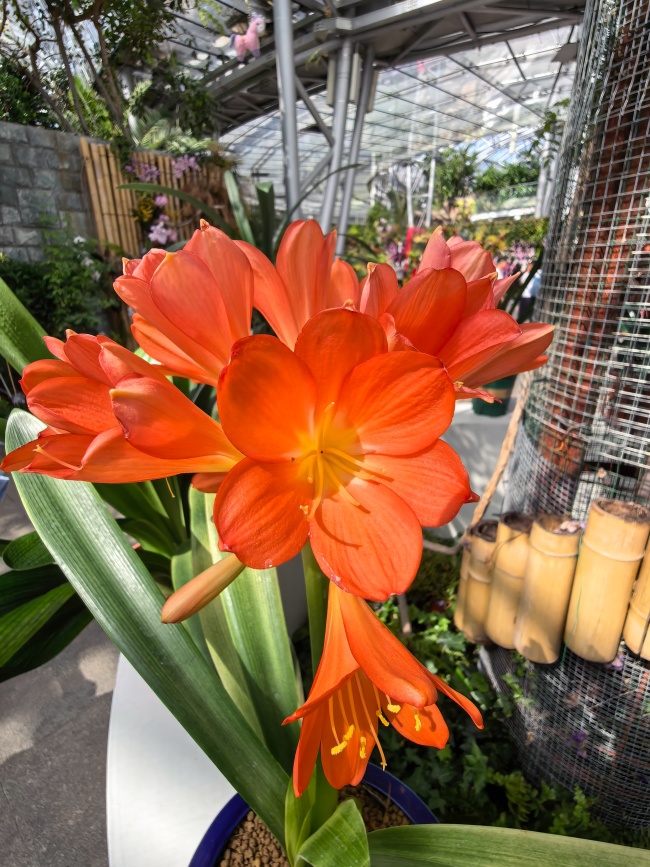 本次展览共展出20余个种(含品种)、100余株君子兰,囊括大花君子兰、奇异君子兰、有茎君子兰等原种,‘佛光’君子兰、‘重瓣牡丹彩’君子兰、‘金碧辉煌’君子兰、‘凤凰展翅’君子兰、‘翡翠屏’君子兰、‘黄百合’君子兰、[西芬斯女儿]君子兰等优秀品种,让游客沉浸式感受其叶形挺拔、花姿端庄的独特之美。