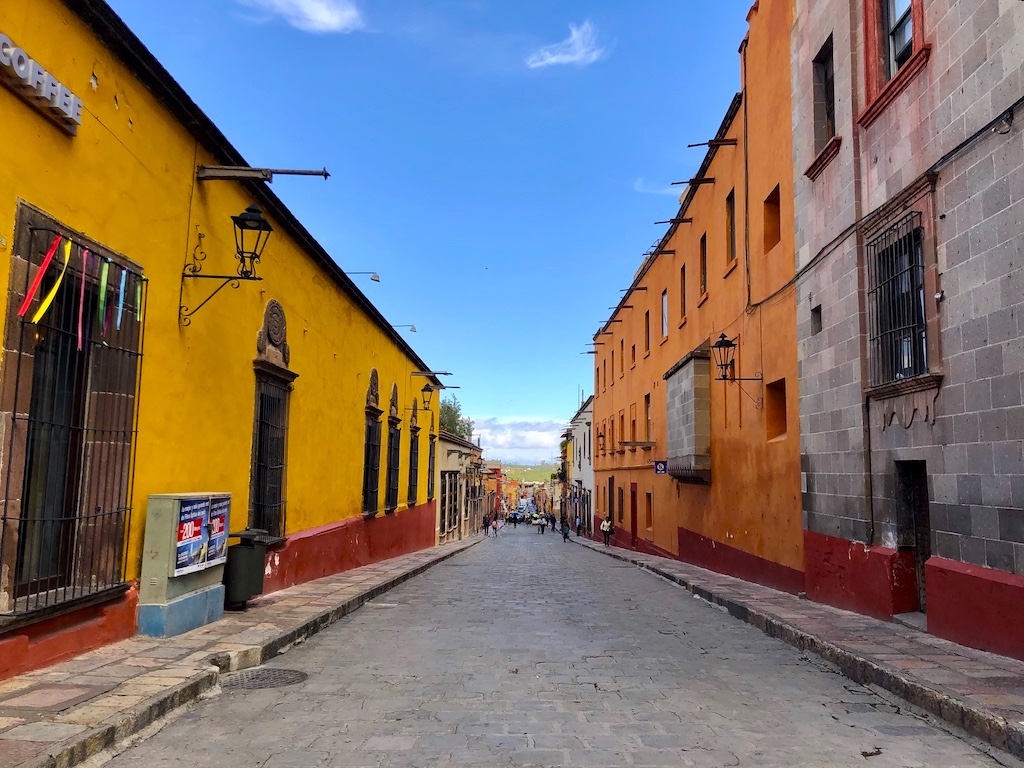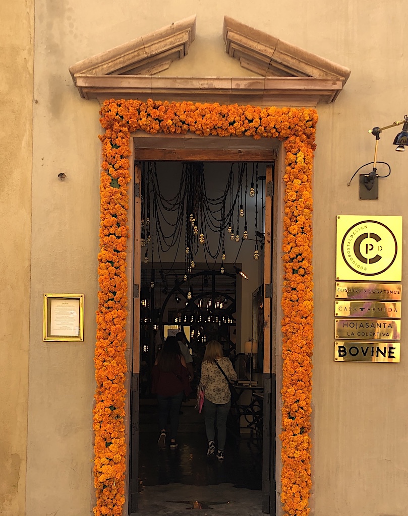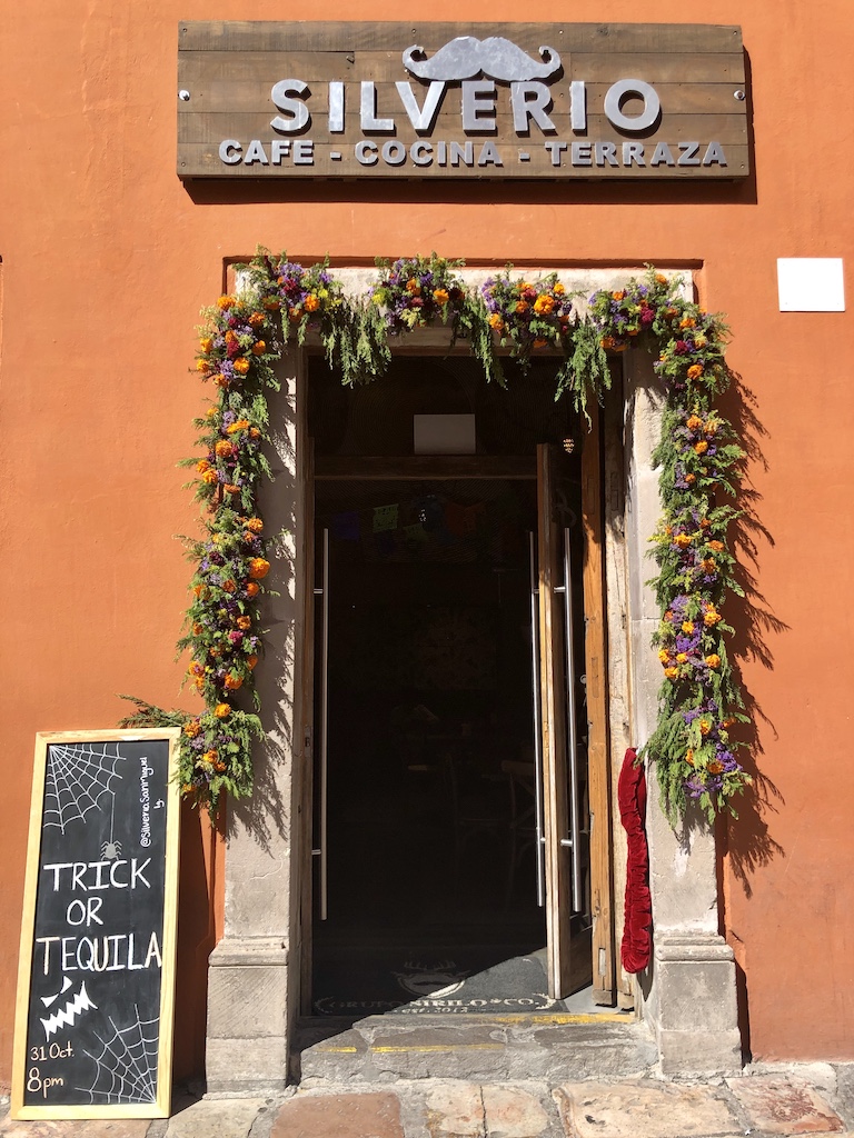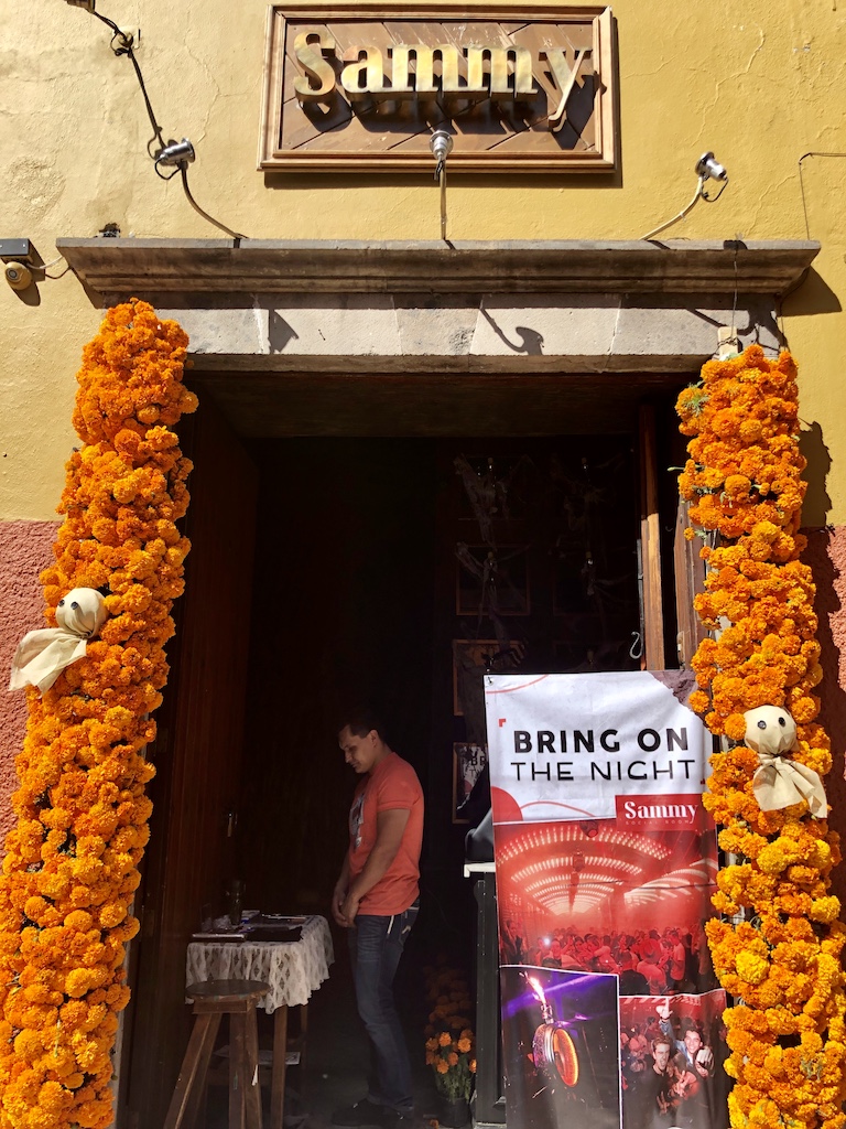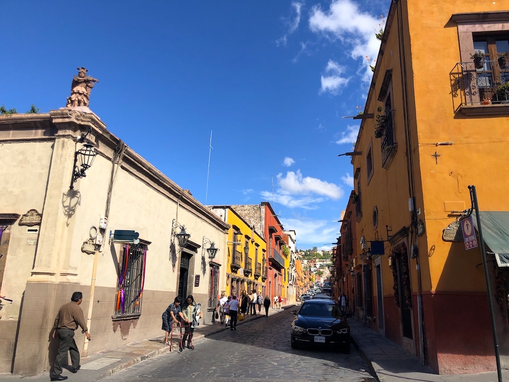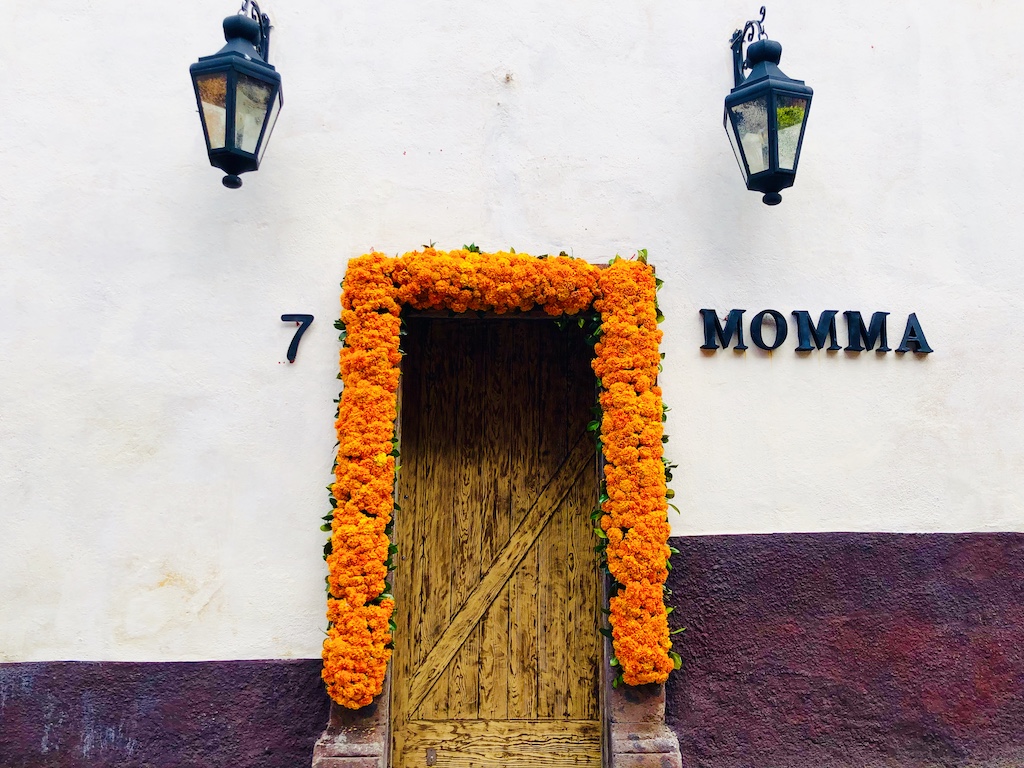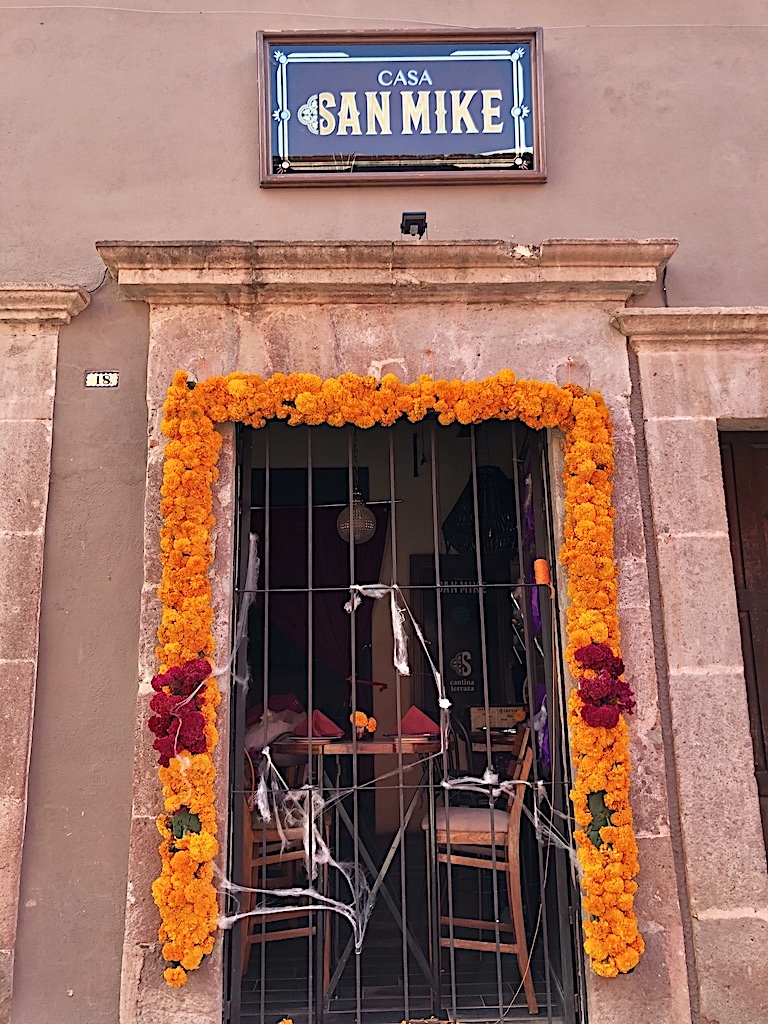 在墨西哥湛蓝天空的映衬下,走在圣米格尔的街上,两旁的建筑在鲜花的衬托下营造出的一种奇异、热情的氛围。亡灵节倒计时开始!