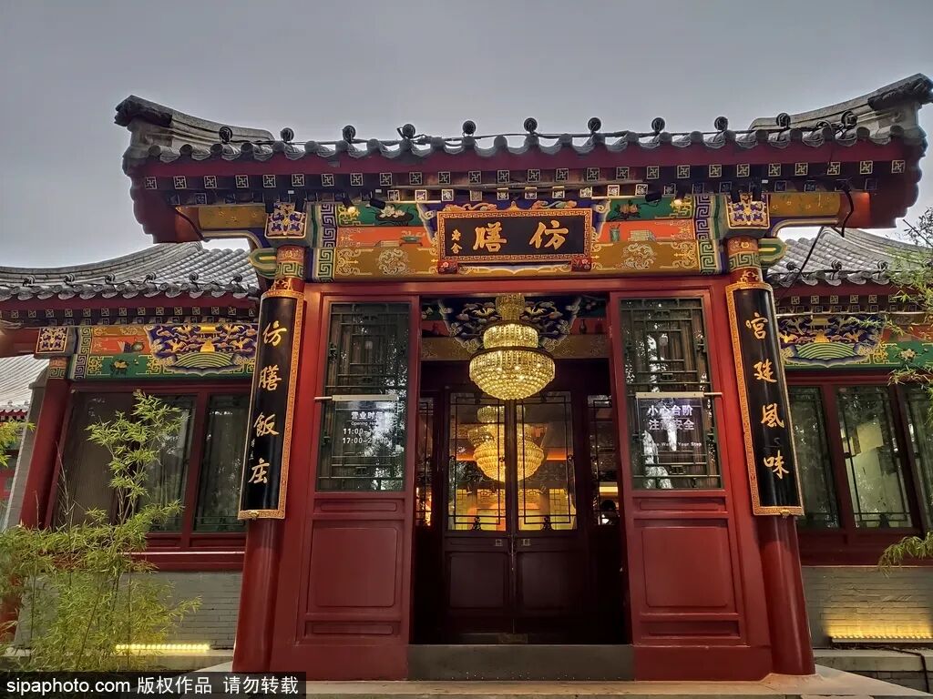 从荷花市场出来,经过地安门西大街来到北海公园,这里有一家很出名的老字号饭店——仿膳饭庄。